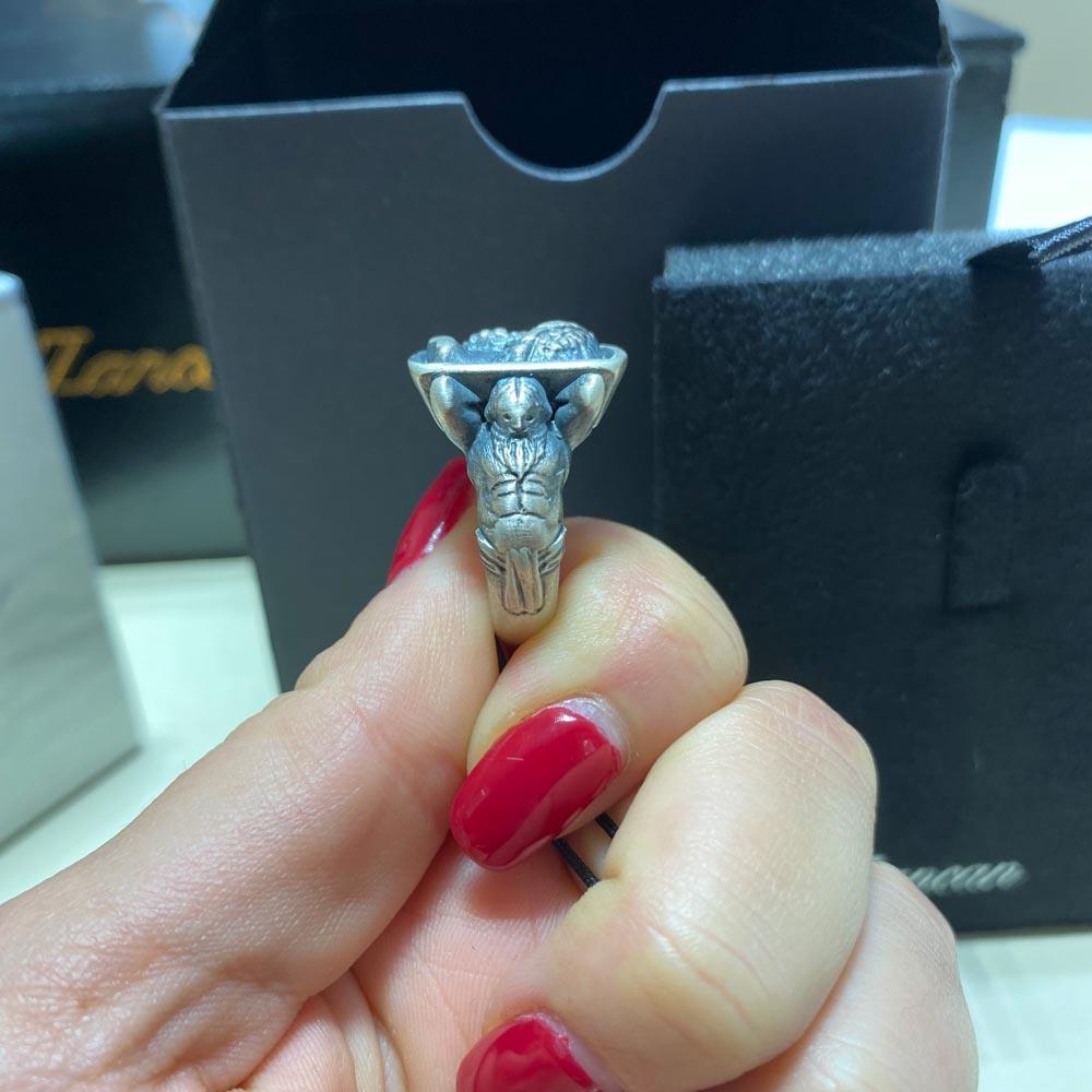 Anello Zancan EXA194 argento Adone finitura vintage. Anello Zancan in argento raffigurante il viso di Adone. Anello in argento 925 dal peso di 13,50 gr. Trattamento naturale all’ossido di zolfo.Il gioiello fa parte della collezione Vintage, caratterizzata da un particolare trattamento naturale all'ossido di zolfo che dona questo particolare effetto invecchiato. Questa tecnica permette di donare ad ogni gioiello un aspetto unico, mai replicabile. L'anello è completamente realizzato a mano in Italia. L'articolo è accompagnato da confezione regalo ed è provvisto di garanzia originale del brand.