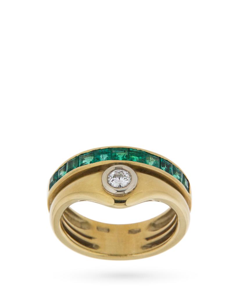 Il colore classico dell'oro è impreziosito da smeraldi e da un diamante.