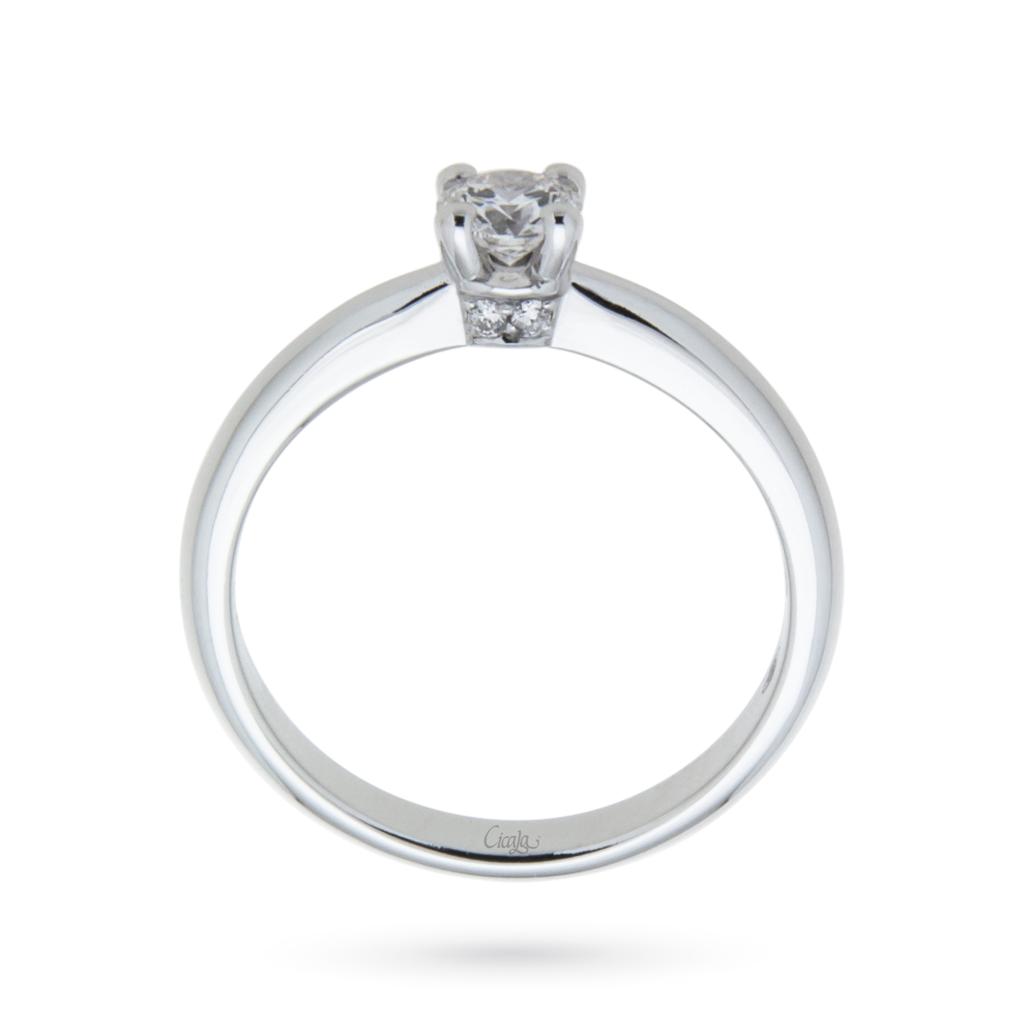 L'oro bianco, tra tutti i materiali usati in gioielleria, è il metallo nobile per eccellenza. Sapientemente lavorato dagli orafi Cicala esso sostiene ed esalta il diamante centrale conferendo al gioiello una sicurezza massima unitamente ad una lucentezza fuori dal comune. Il risultato è un capolavoro di eleganza.