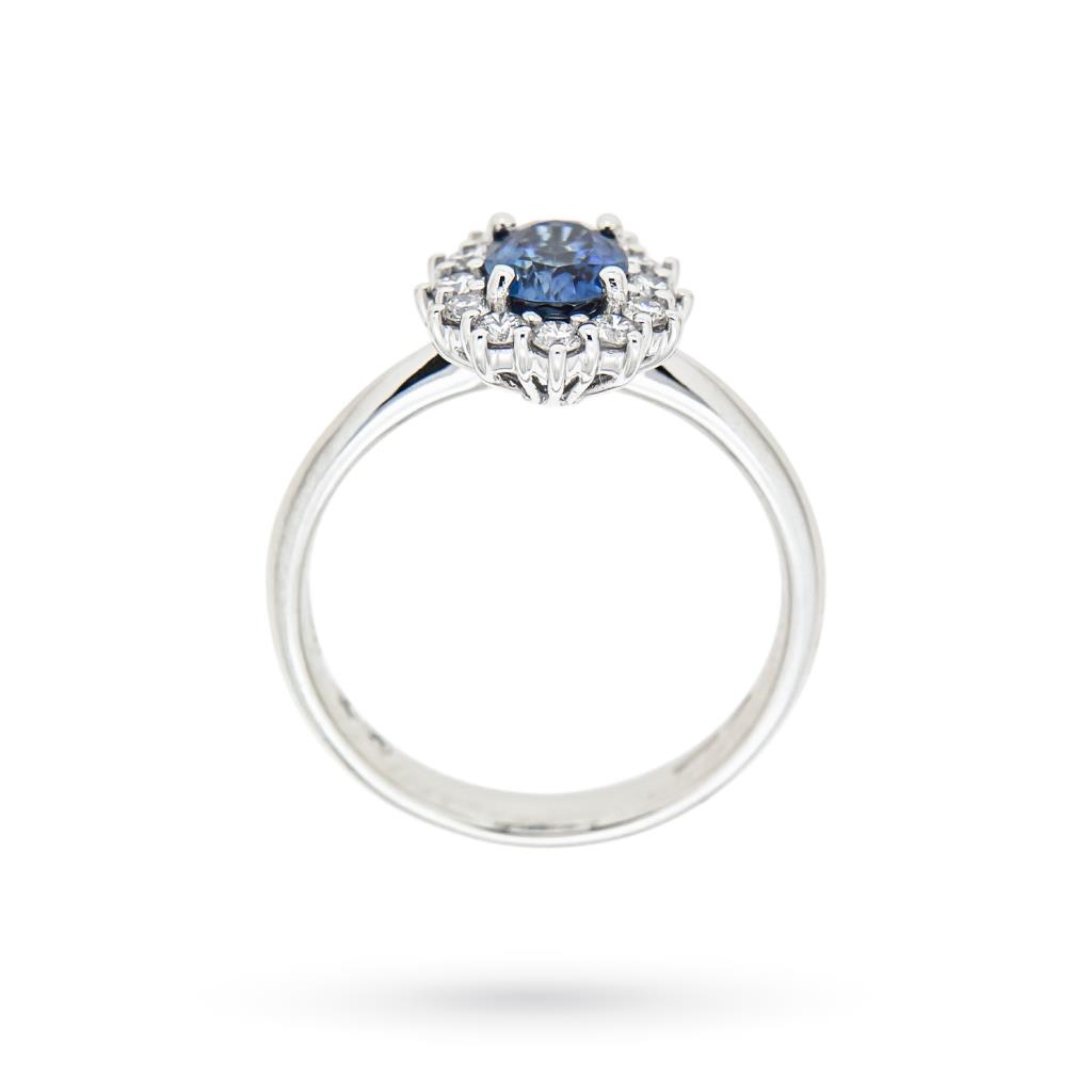 Il fascino dello zaffiro è incorniciato da una selezione di 11 diamanti taglio brillante per una caratura totale di 0.39 carati, con colore H e purezza VS. Ogni pietra è scelta e incastonata con maestria, contribuendo a creare un contrasto cromatico tra il blu intenso della gemma centrale e la luminosità dei diamanti, dando vita a un anello che sprigiona luce da ogni angolazione. Questo dettaglio rende l’anello perfetto per essere indossato come pezzo da protagonista nelle occasioni speciali, oppure per aggiungere un tocco lussuoso alla quotidianità.