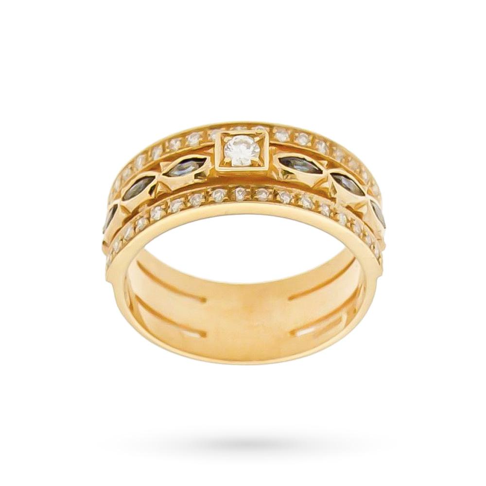 Un magnifico anello in stile vintage realizzato interamente in oro giallo 18kt ed impreziosito da 6 stupendi smeraldi taglio marquise e diamanti taglio brillante. Una vera e propria opera d'arte di oreficeria espressa in un gioiello dalle caratteristiche eccezionali.