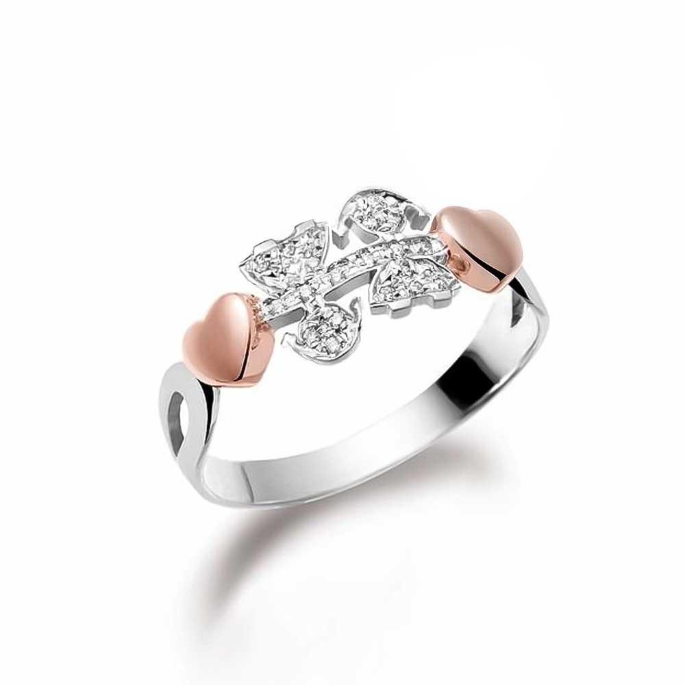 Anello leBebe LBB113 sagome 2 bimbi pave diamanti 2 cuori. L'amore è un prezioso abbraccio tra il tuo cuore e i tuoi bimbi.