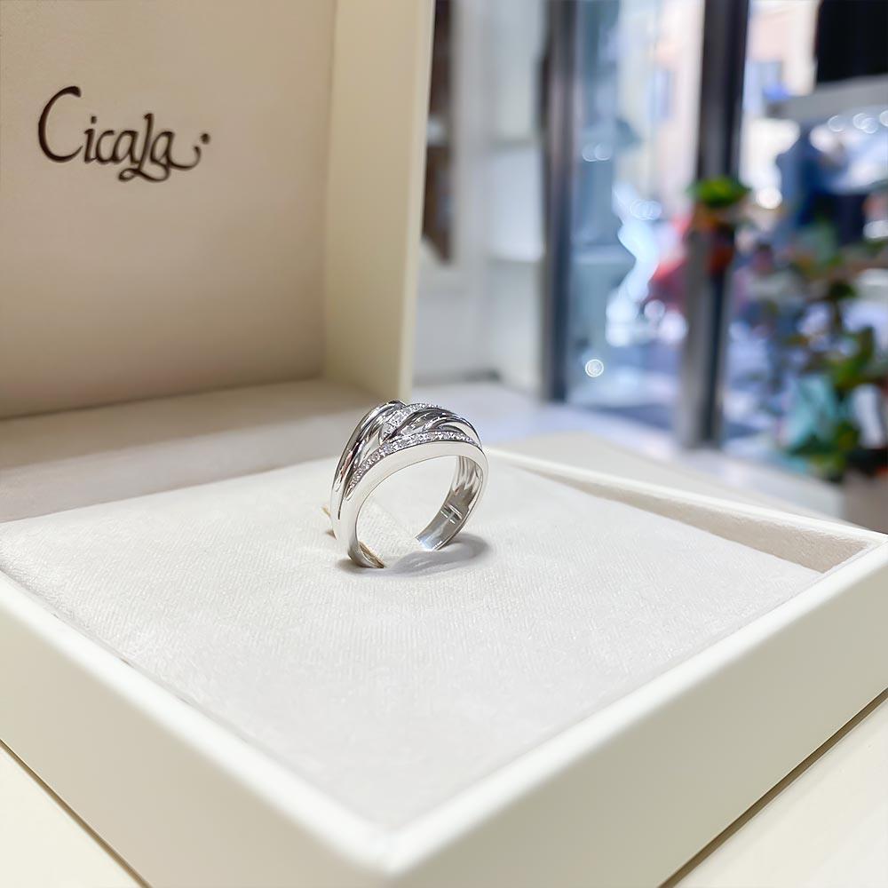 Anello linee oro bianco 18kt e diamanti 0,15ct