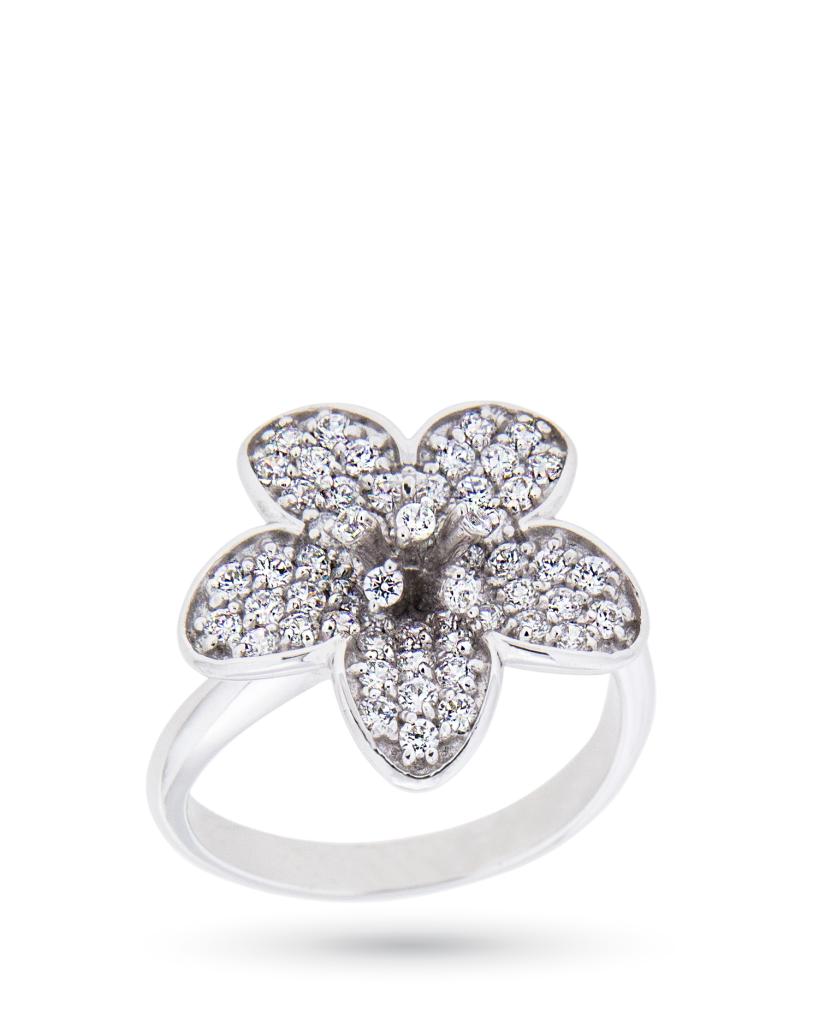 Anello oro bianco 18kt fiore zirconi bianchi