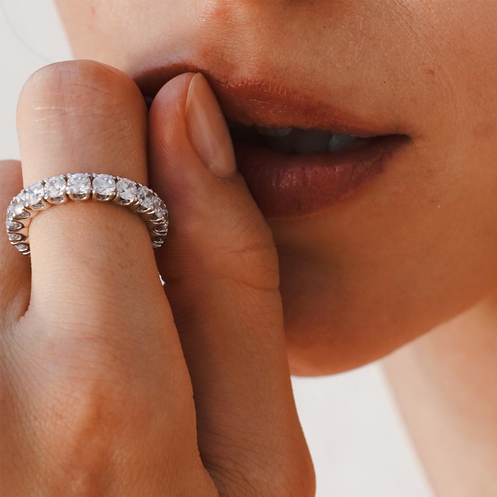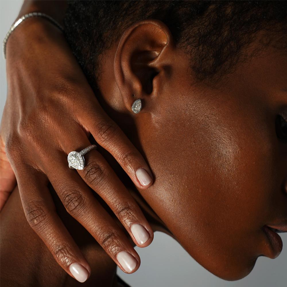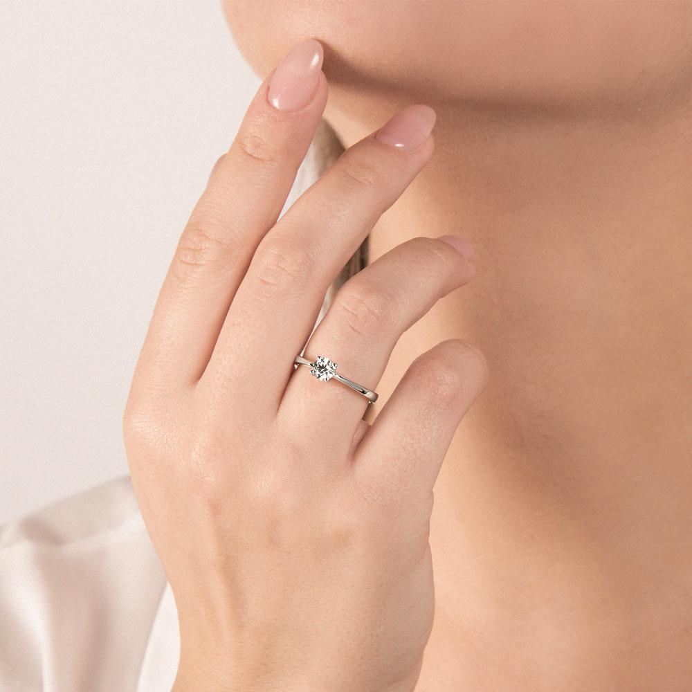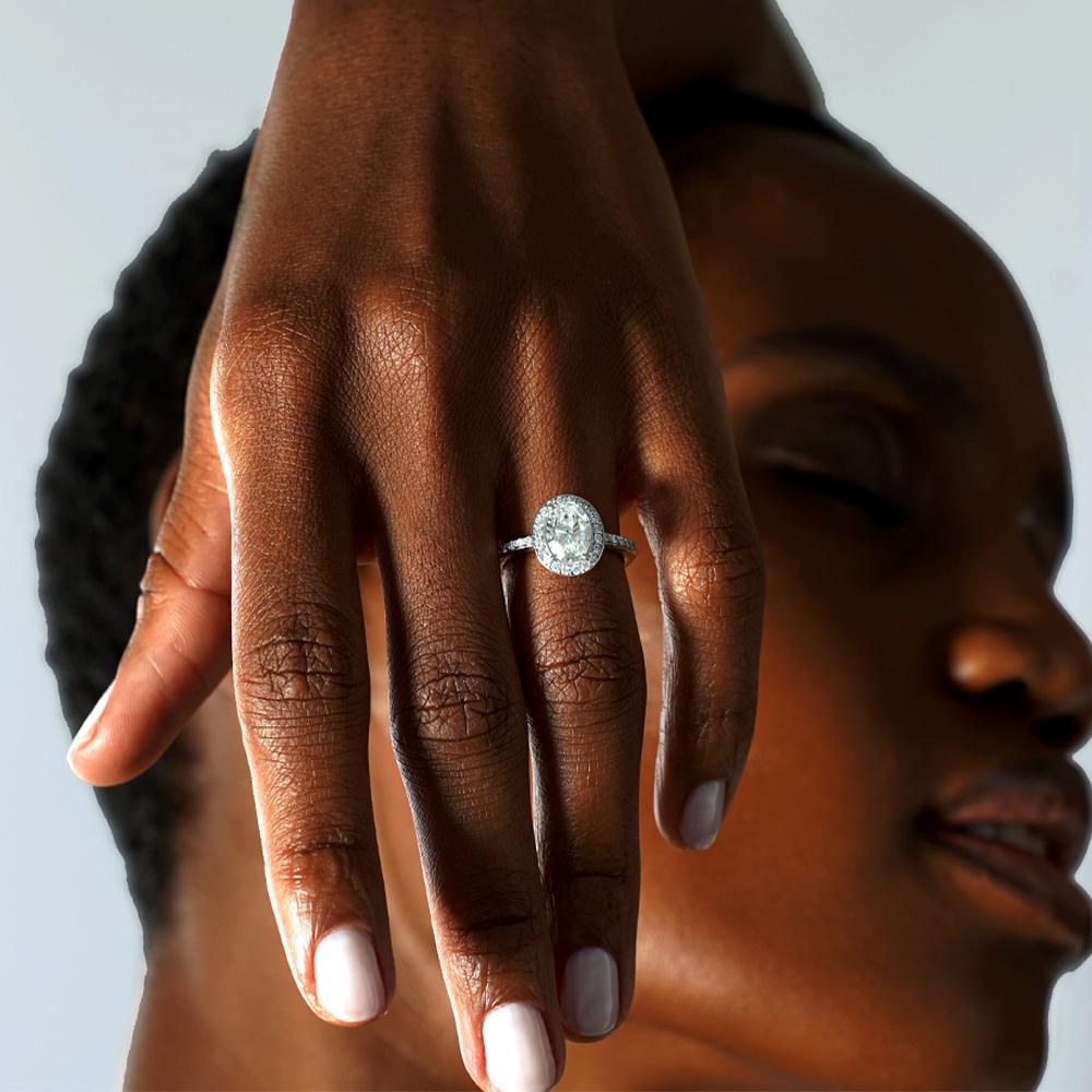 Questo anello realizzato in oro bianco riciclato 18 KT incastona 1 diamante AMA taglio ovale da 2 ct e 32 diamanti AMA taglio brillante da 0.01 ct per una caratura totale di 2.32 ct. I diamanti AMA sono diamanti creati dall'uomo di colore F (o superiore) e purezza VS (o superiore). Tutti i diamanti superiori a 0,50 ct, se non forati, sono accompagnati da certificato IGI. Qualora la caratura del diamante non fosse disponibile potrebbe essere sostituito da un diamante di caratura superiore. La gioielleria omaggia una copertura assicurativa sulla spedizione del gioiello.