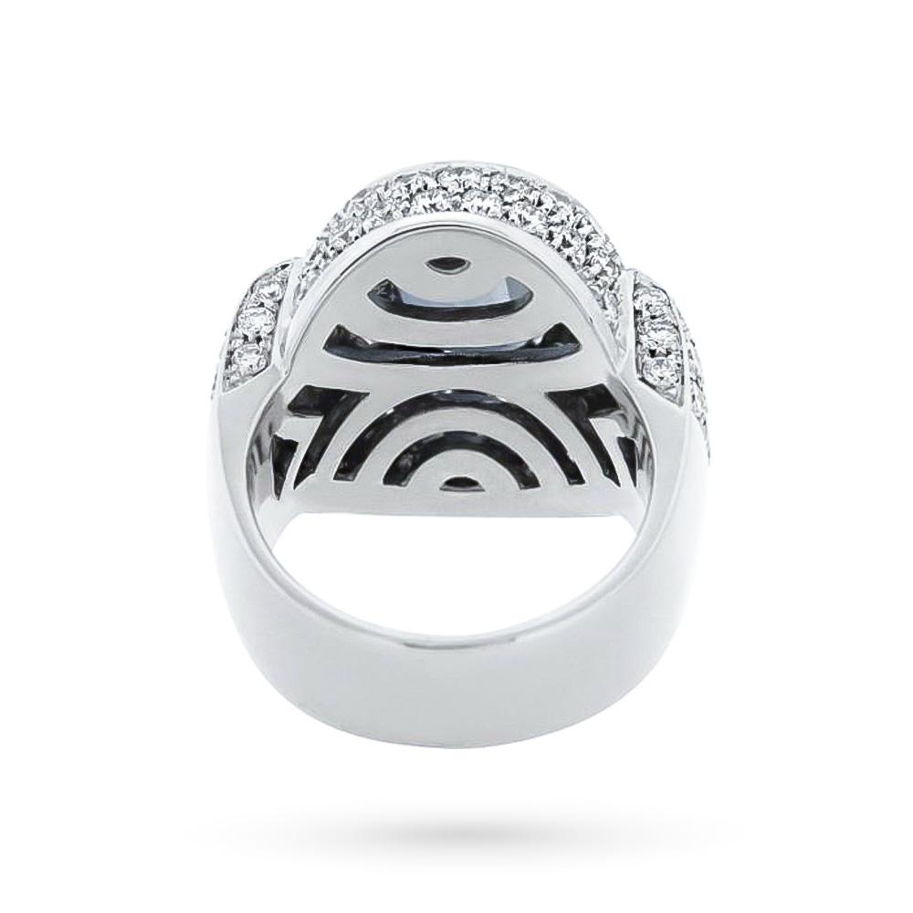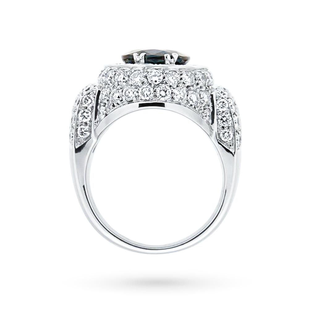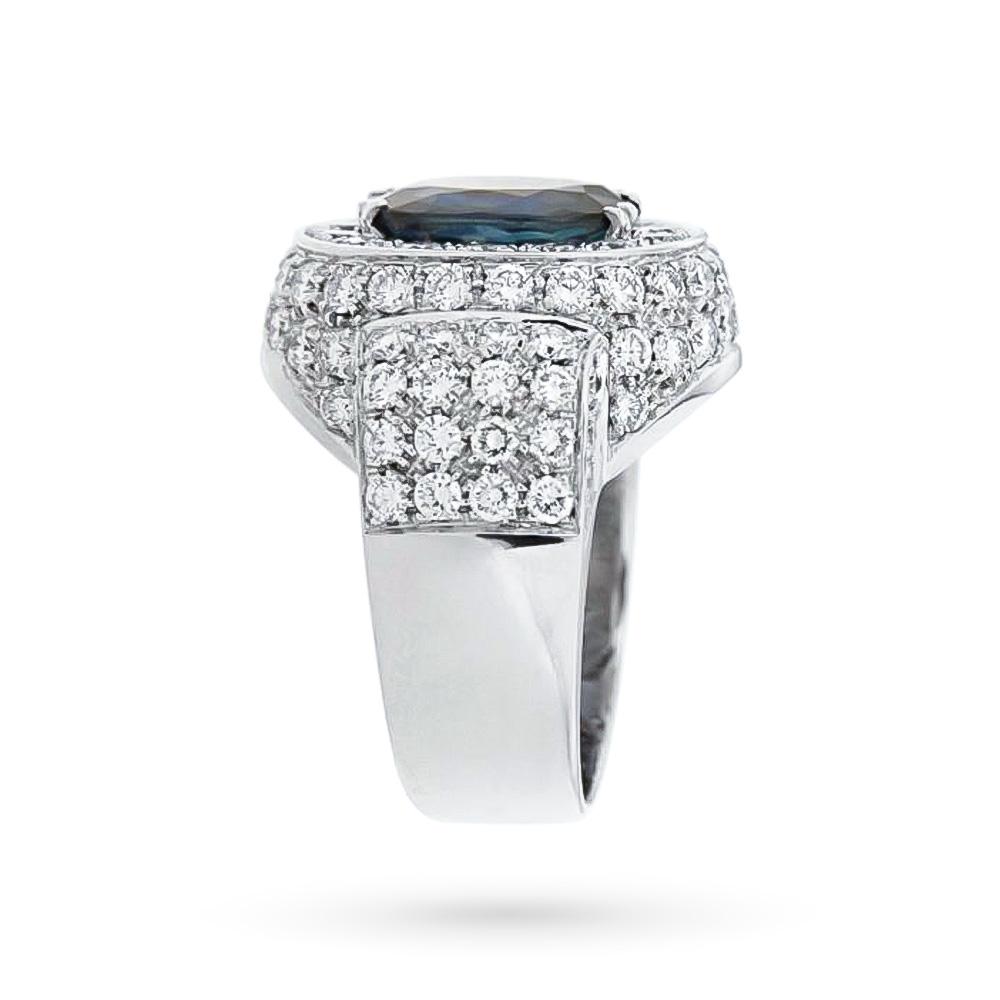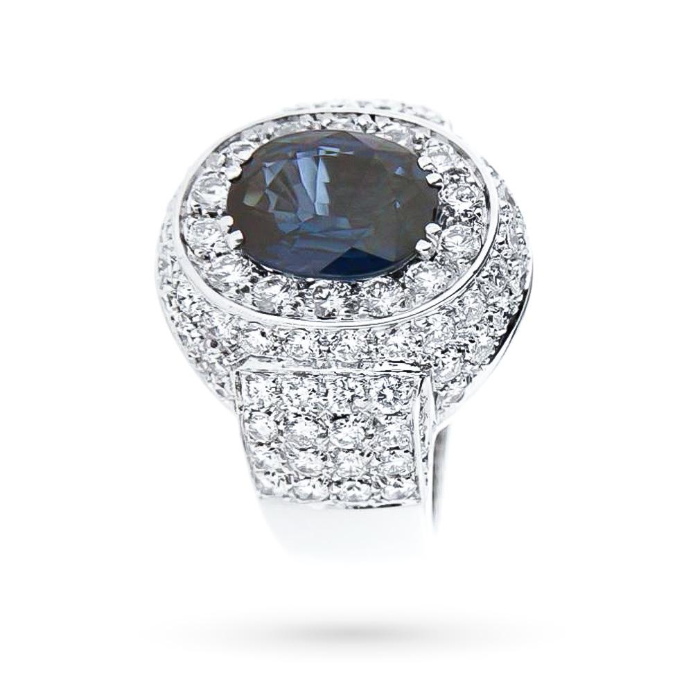 Anello in Oro Bianco 18kt con Zaffiro Ovale 4,02 ct e Pavè di Diamanti 3,50 ct