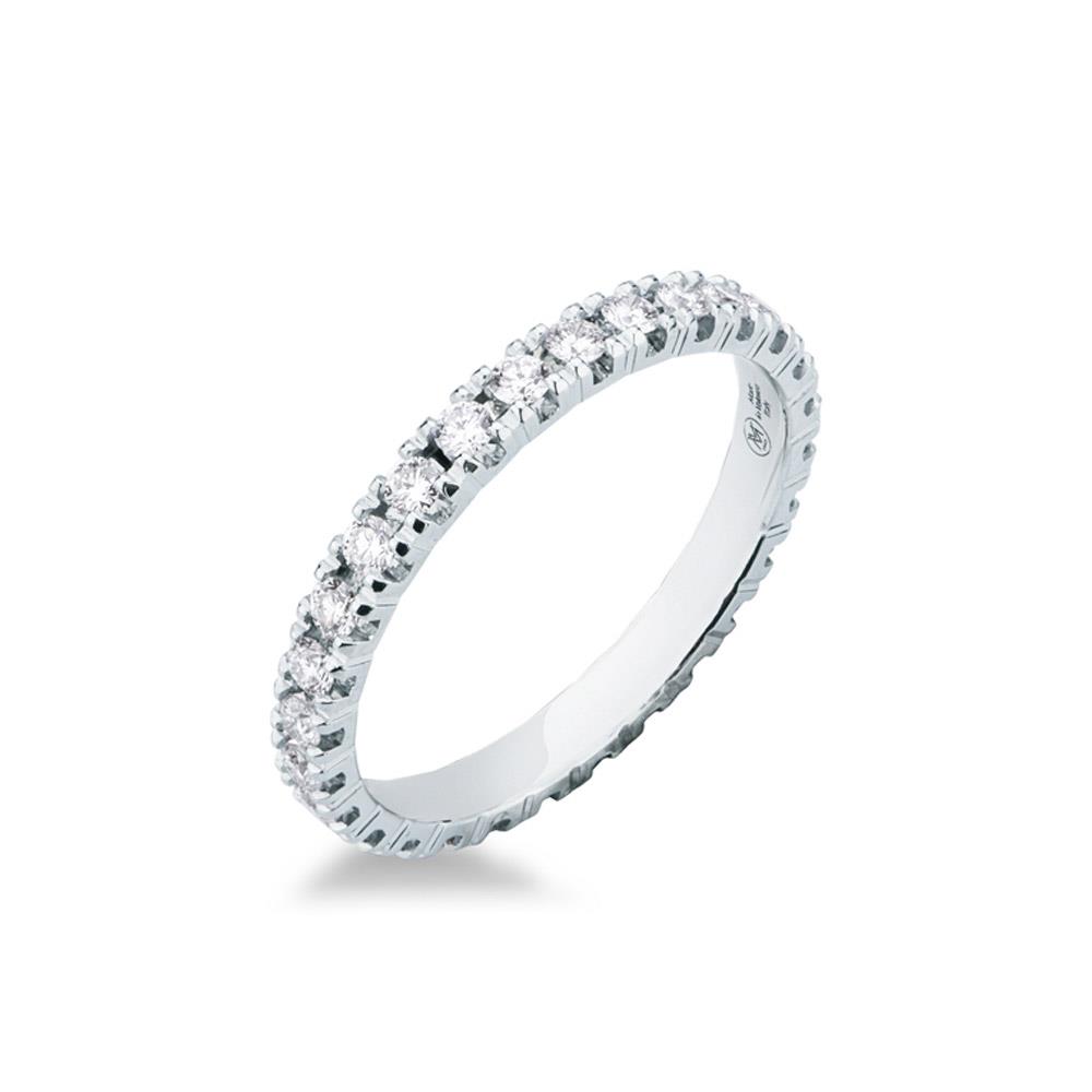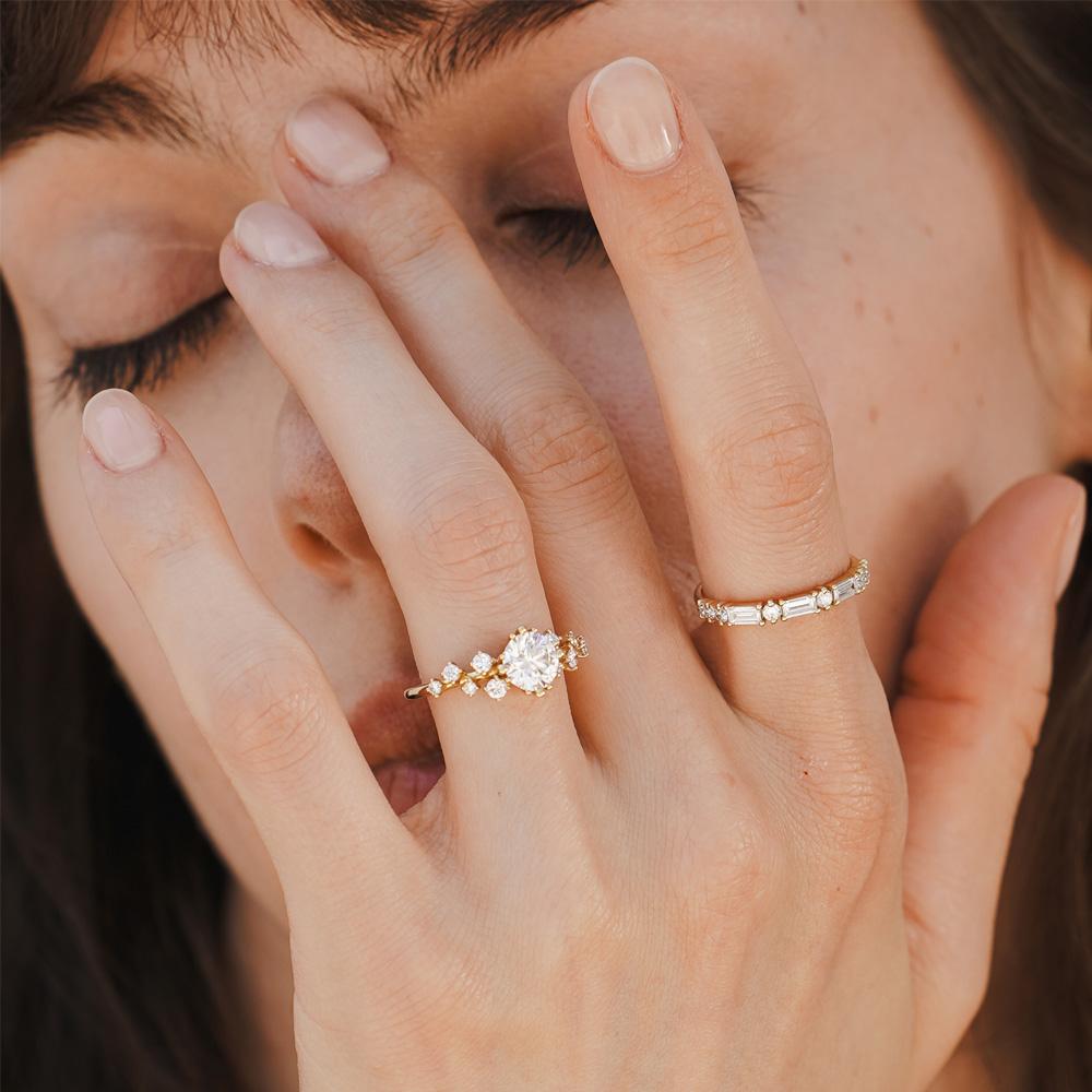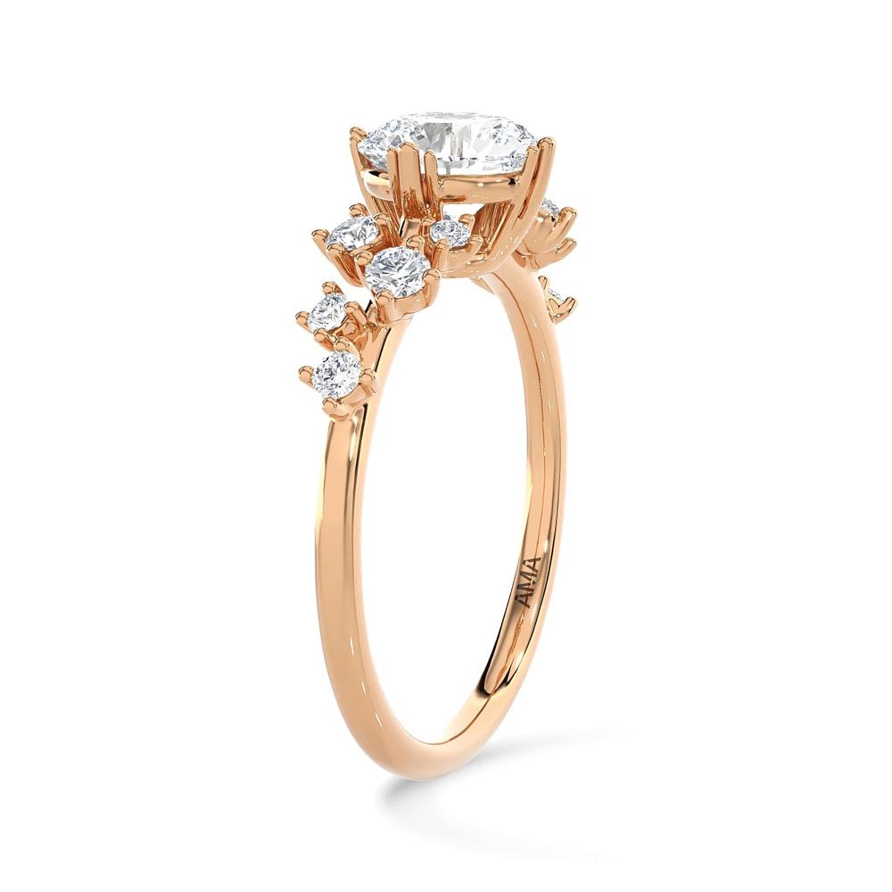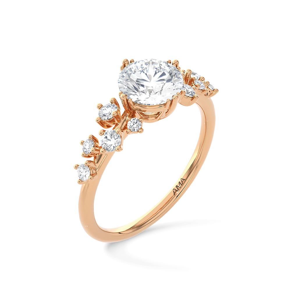 Questo anello realizzato in oro rosa riciclato 18 KT incastona 1 diamante AMA taglio brillante da 1 ct, 2 diamanti AMA taglio brillante da 0.0145 ct, 2 diamanti AMA taglio brillante da 0.019 ct, 1 diamante AMA taglio brillante da 0.025 ct, 2 diamanti AMA taglio brillante da 0.035 ct e 3 diamanti AMA taglio brillante da 0.045 ct per una caratura totale di 1.30 ct. MIsura 9. I diamanti AMA sono diamanti creati dall'uomo di colore F (o superiore) e purezza VS (o superiore). Tutti i diamanti superiori a 0,50 ct, se non forati, sono accompagnati da certificato IGI. Qualora la caratura del diamante non fosse disponibile potrebbe essere sostituito da un diamante di caratura superiore. La gioielleria omaggia una copertura assicurativa sulla spedizione del gioiello.