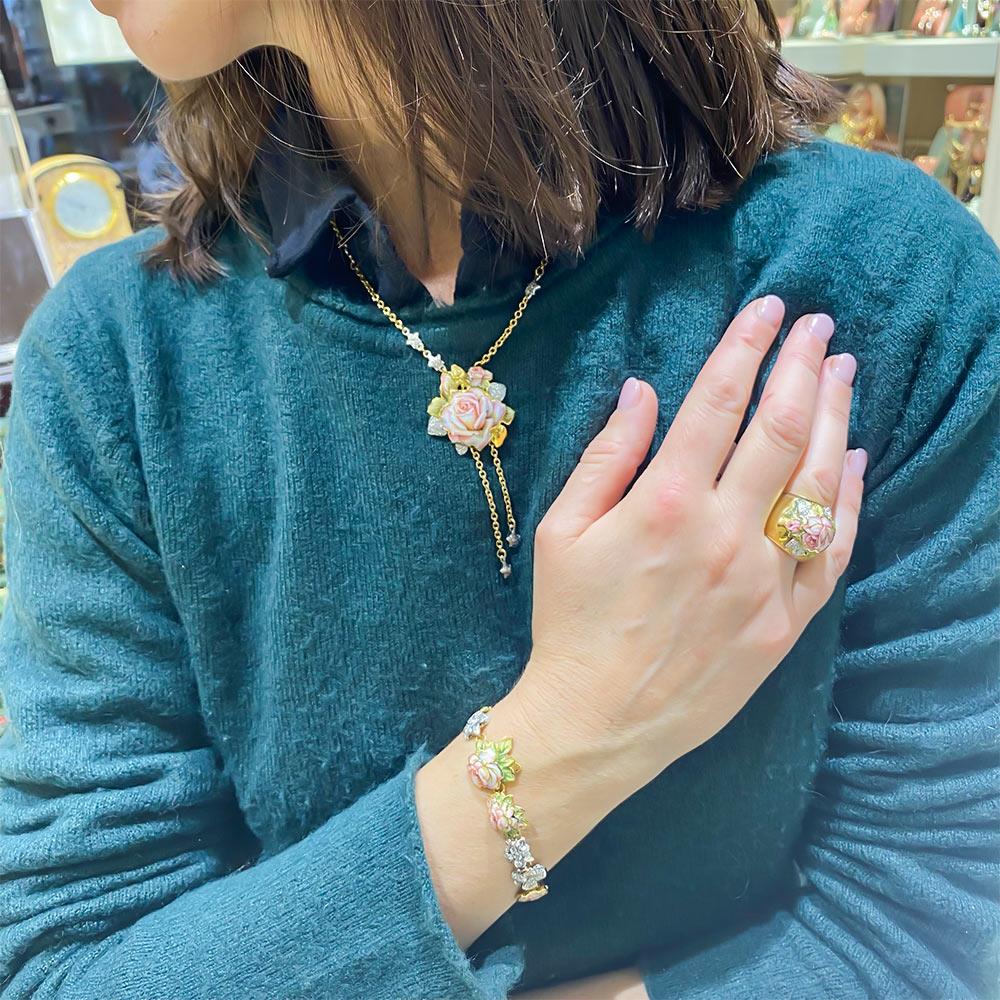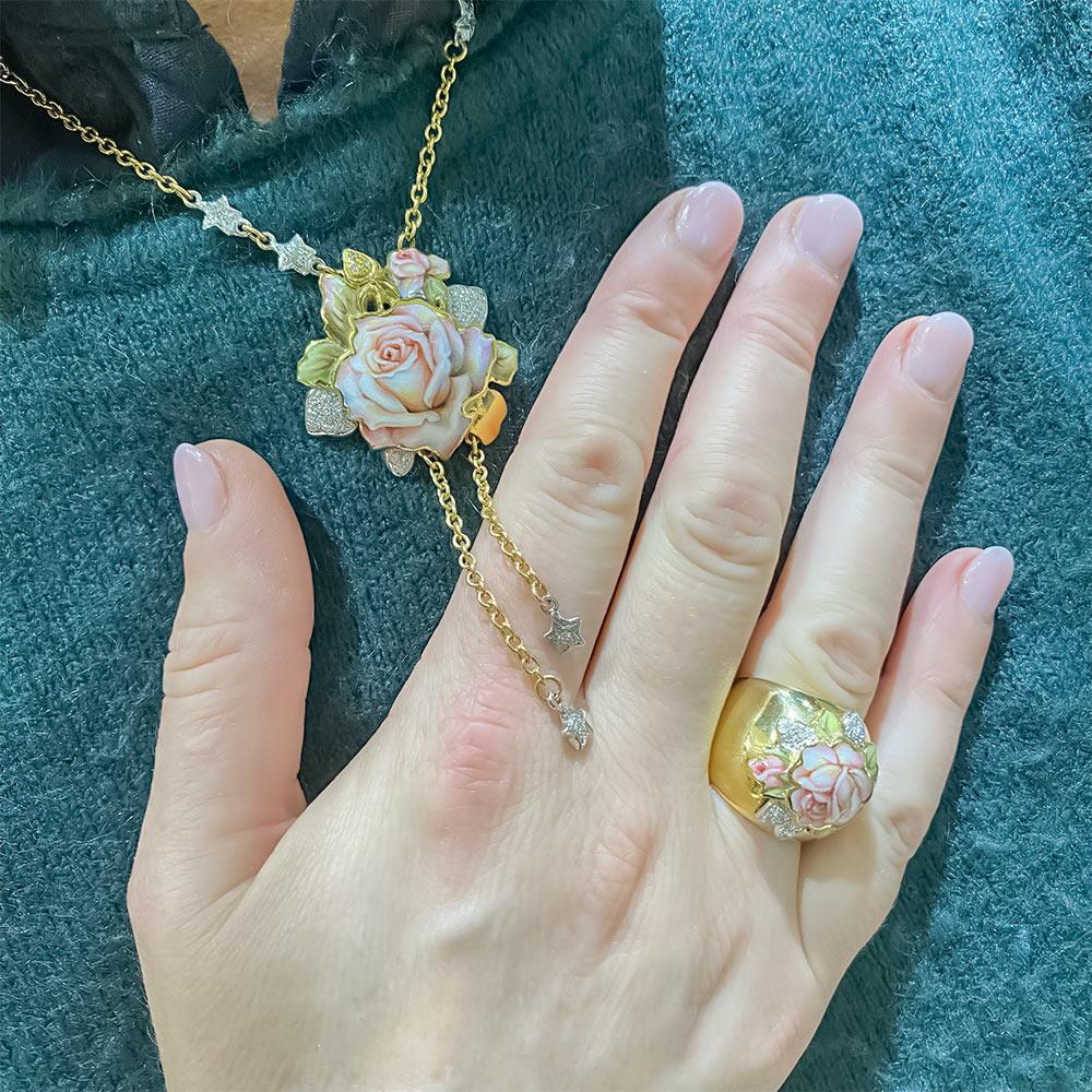 La rosa è smaltata interamente a mano dagli artisti del brand con colori realistici.