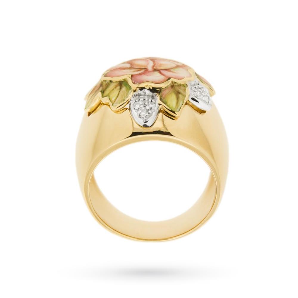 Anello rosa smaltata diamanti fascia oro Gabriella Rivalta