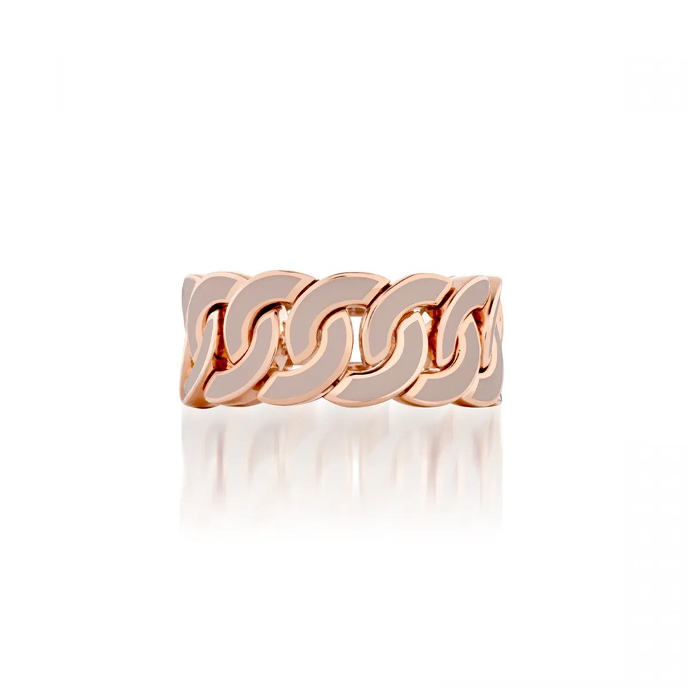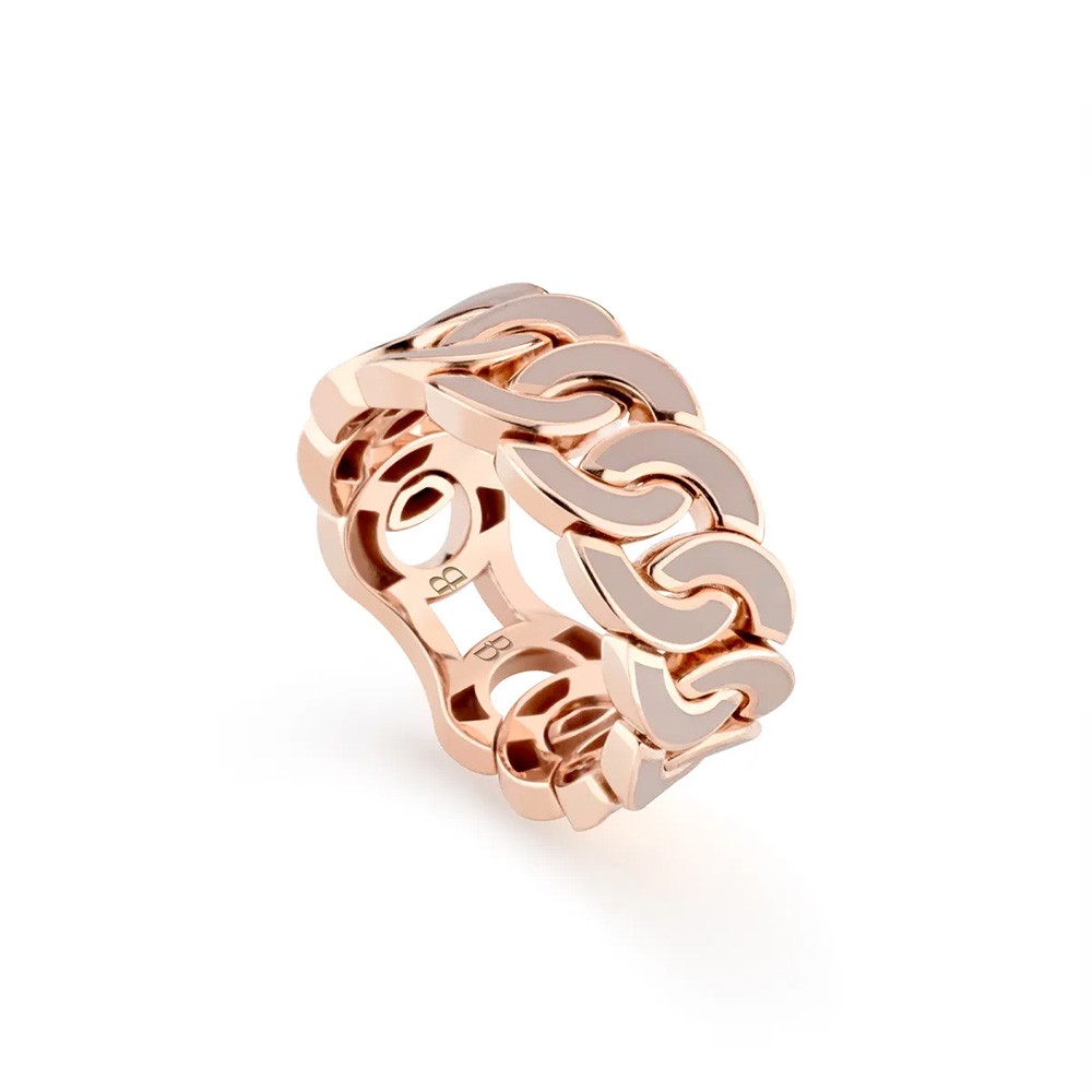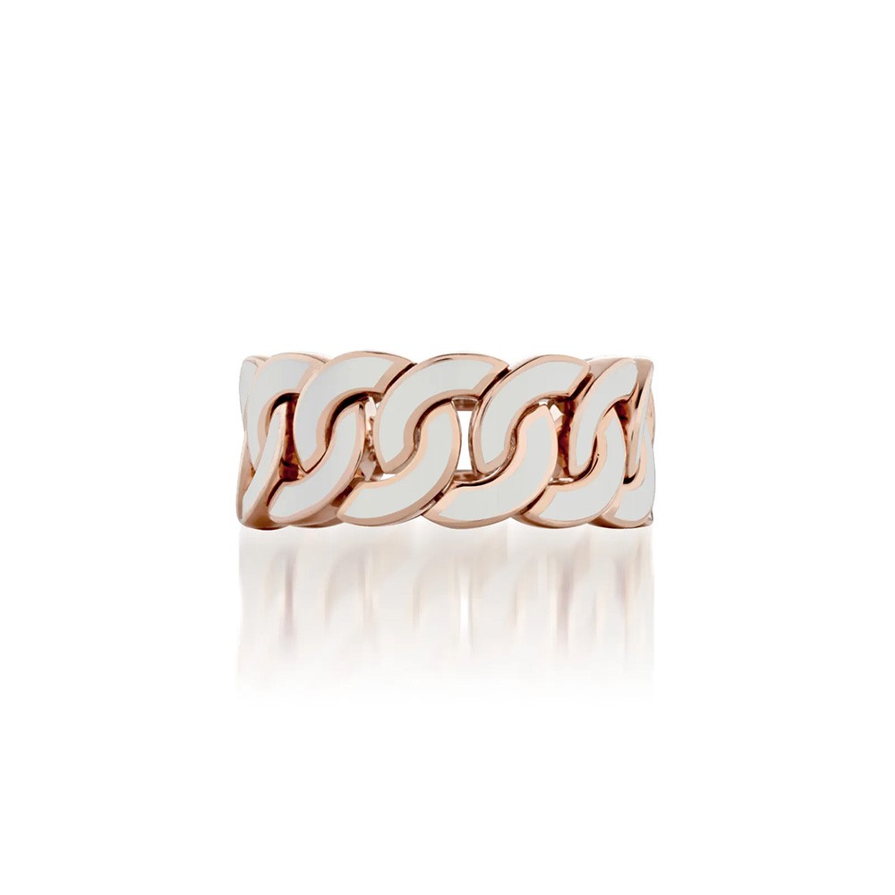 Scopri l’eleganza dell’anello a fascia “AMORE”, una creazione romantica che unisce materiali preziosi e design raffinato. Le fasce esterne, realizzate in oro rosa 18kt, avvolgono armoniosamente le lettere centrali in oro bianco 18kt, impreziosite da diamanti taglio brillante dal peso complessivo di 0,20ct.
