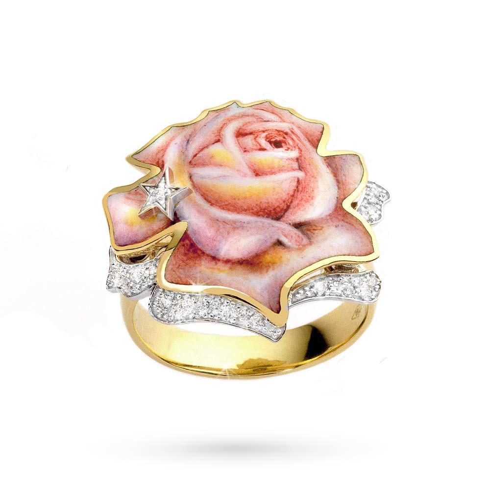 Anello a fascia “AMORE” in oro rosa e bianco con diamanti da 0,20ct – Eleganza e sentimento.