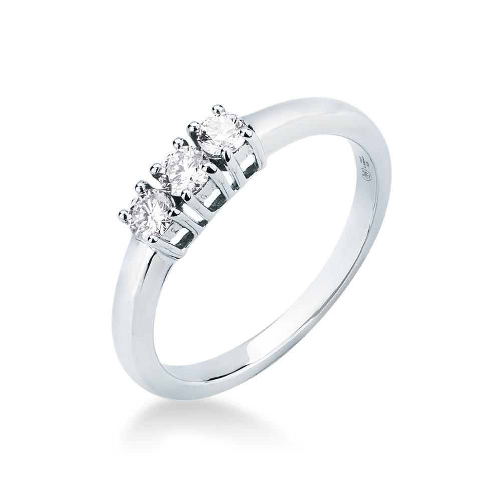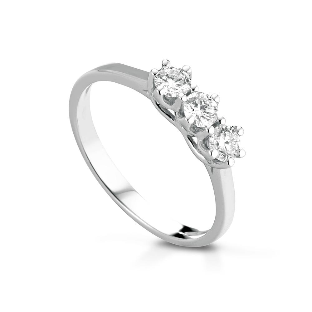Anello trilogy oro diamanti 0,43ct Mirco Visconti. Questo anello trilogy con diamanti taglio brillante è un gioiello Made in Italy con ottime caratteristiche qualitative creato dal brand di gioielli di Valenza Mirco Visconti. La montatura è eseguita in elegante e prezioso oro bianco 18kt, anallergico, nickel free. Ogni diamante è sostenuto da quattro solide griff, che ne massimizzano la lucentezza e la sicurezza. Al centro sono posizionati quindi tre magnifici diamanti naturali. E' accompagnato da una elegante scatola regalo e da garanzia ufficiale Mirco Visconti. Dal momento dell'acquisto il gioiello è coperto da assicurazione contro furto, scippo, rapina e incendio per la durata di un anno. Curiosità : L'anello trilogy è adatto ad ogni occasione della vita di coppia: la nascita di un figlio, la proposta di fidanzamento e soprattutto rappresenta per chi lo riceve un ricordo intramontabile. I tre diamanti simboleggiano infatti Ieri, oggi e domani, e comunicano un concetto di amore infinito ed eterno. Nel caso di acquisto online la spedizione è coperta da un’assicurazione offerta dalla Gioielleria Cicala. NB. Nel caso in cui l’anello non sia in stock ma sia da ordinare al produttore, è possibile che venga creato e consegnato con piccole differenze non sostanziali di caratura e pesi, a testimonianza dell’artigianalità ed unicità di ogni gioiello firmato Mirco Visconti.