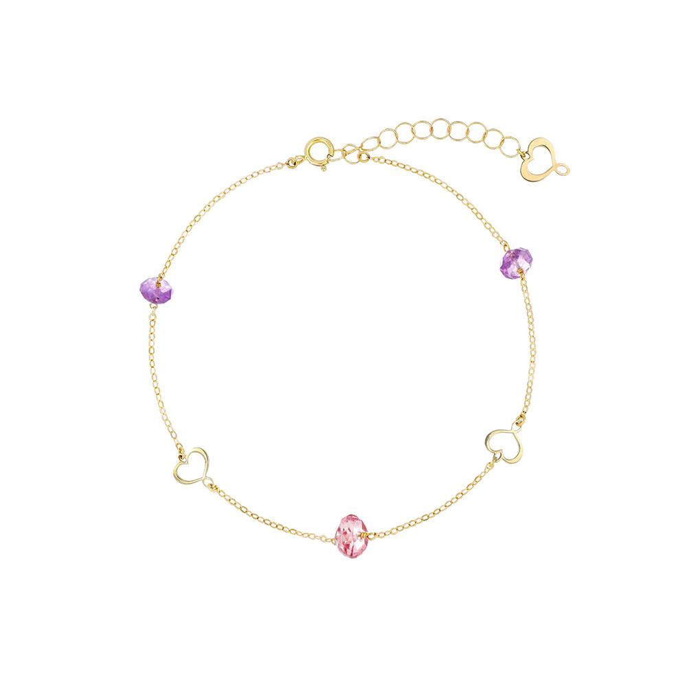 Bracciale Aurum oro rosa 18kt lastra cuore. Bracciale della collezione Aurum di Maman et Sophie realizzato in oro rosa 18kt, con cuore in lastra di dimensioni 6 mm x 6 mm che attraversa la catena in due punti.