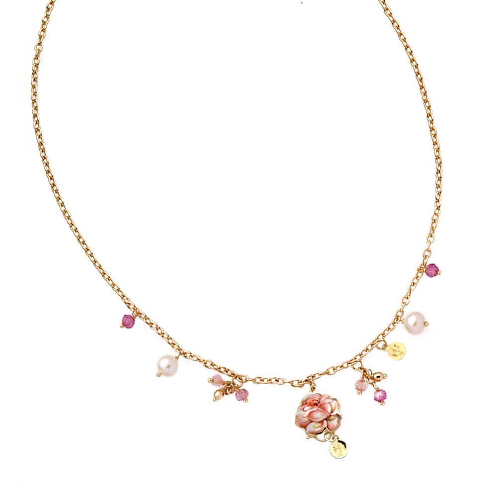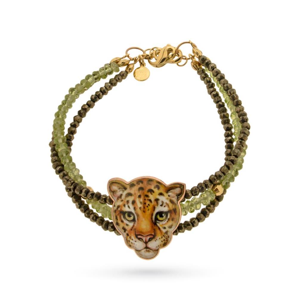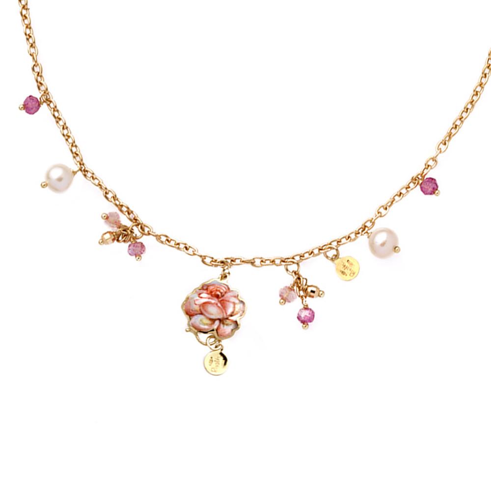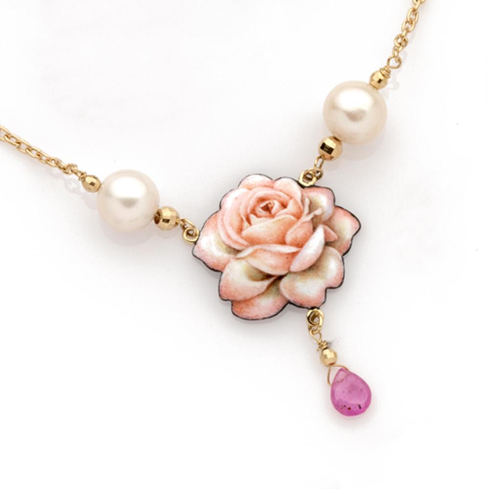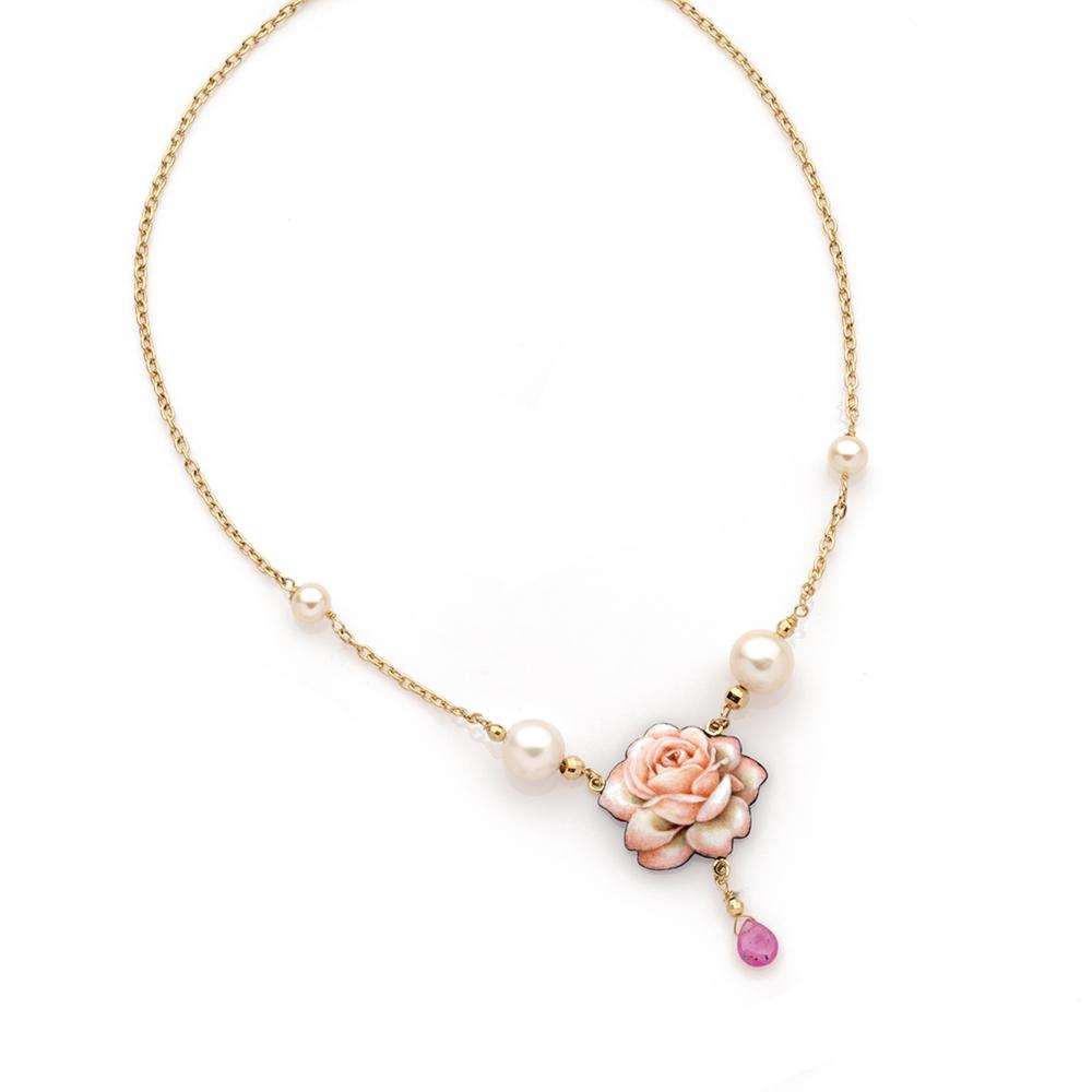 E' creato con oro giallo 18kt, rame e smalti eseguiti a mano e cotti in forno.