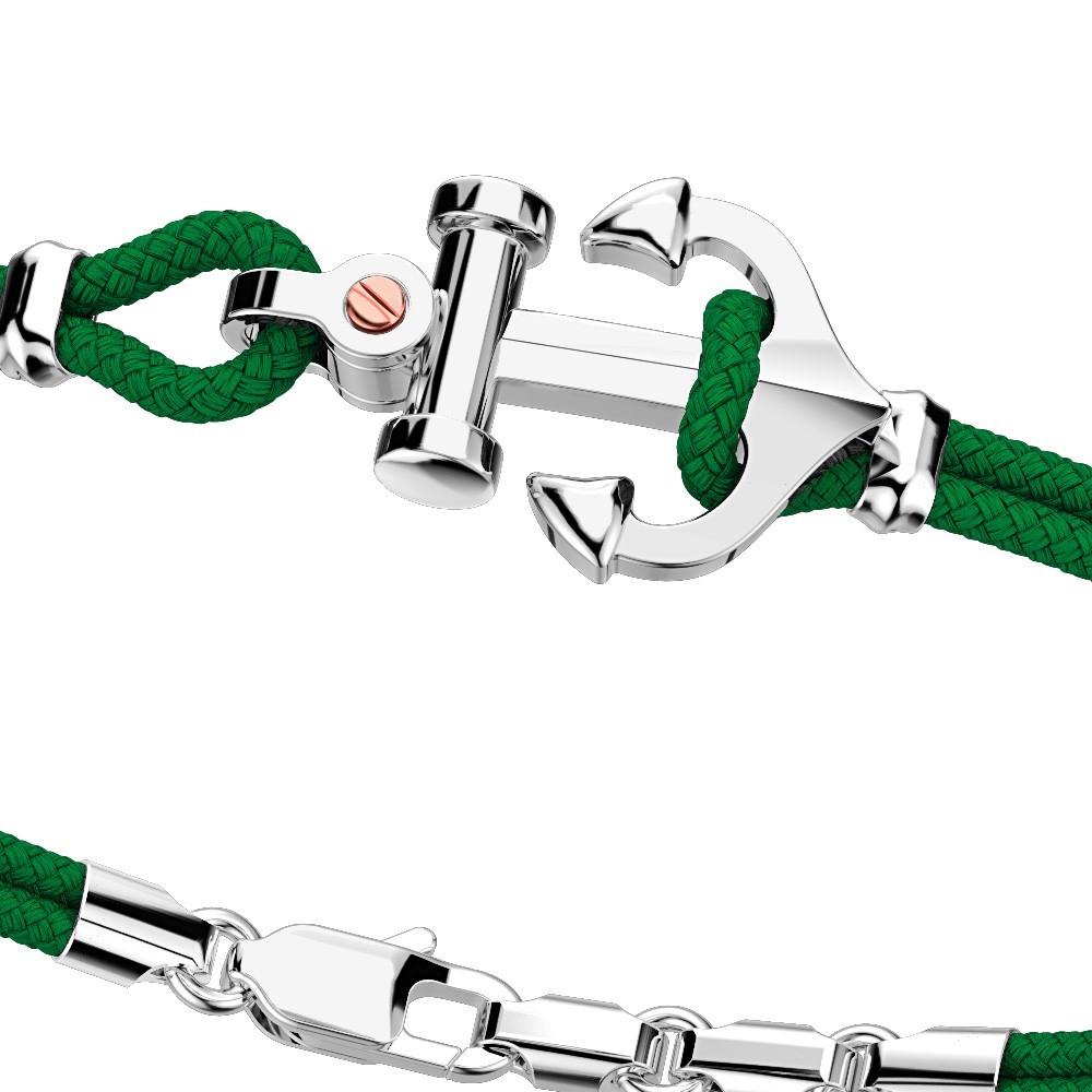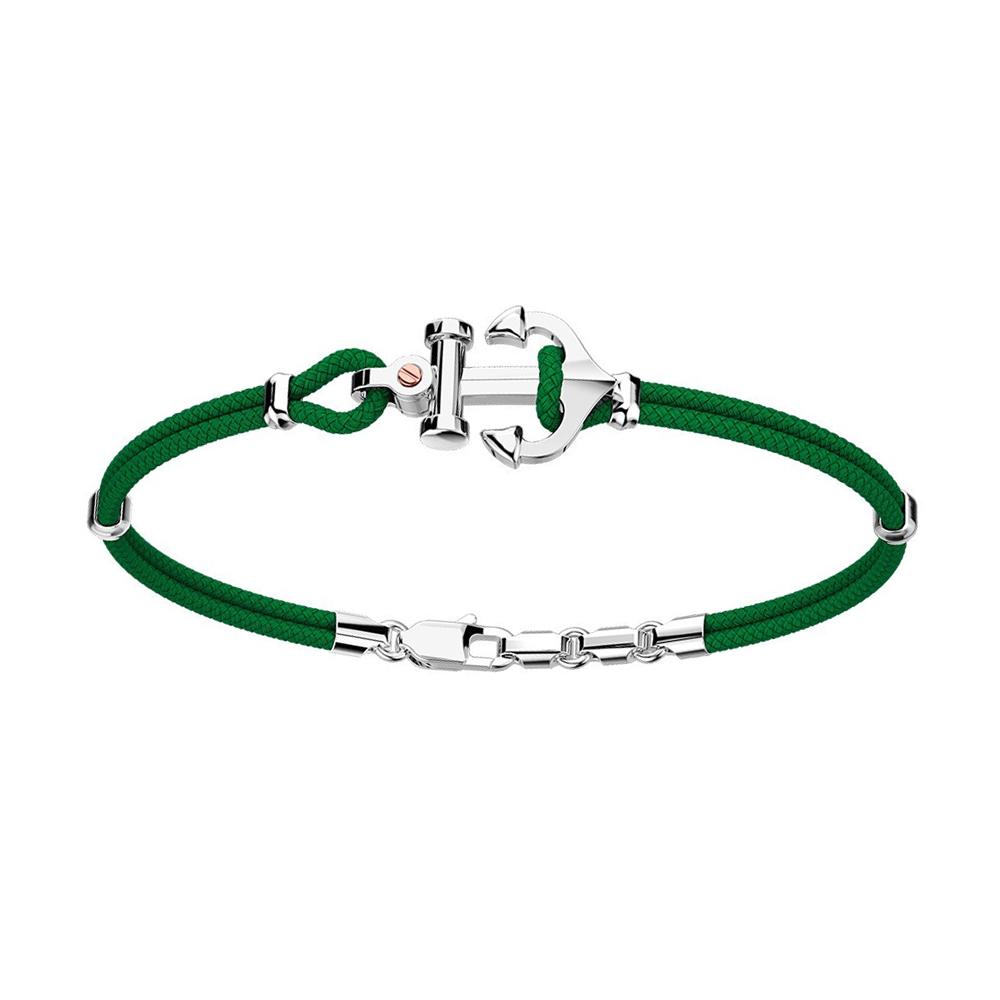 Bracciale Zancan EXB619-VR kevlar verde ancora argento oro. Bracciale Zancan in kevlar con ancora in argento 925 e vite in oro rosa 18k. Il bracciale ha una struttura in kevlar, una corda nautica molto resistente ed inalterabile, disponibile in diverse varianti di colore. L'ancora in finitura lucida è impreziosita da una vita in oro rosa 18k. La chiusura è a moschettone.Un bracciale colorato, vivo, estivo e spontaneo, con dettagli di grande valore. Il gioiello fa parte della collezione Regata, ricca di colori e simboli nautici, ispirata al mondo della vela e alle competizioni nautiche. Il bracciale è completamente realizzato a mano in Italia ed ha un peso di 7.01gr, di cui 7,00gr ag e 0.01gr au. Consegna con scatola e garanzia.