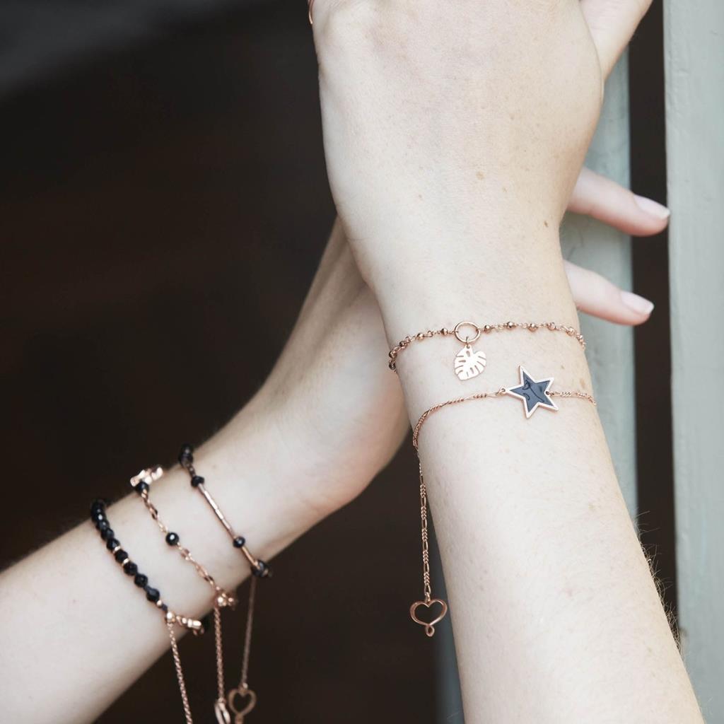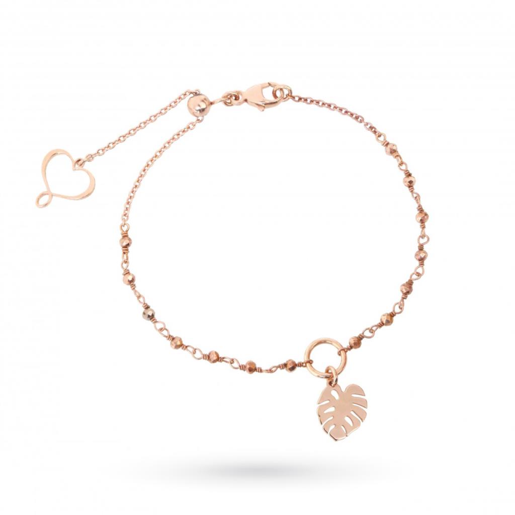 Cerchio di 5 mm di diametro con foglia monstera piccola con galvanica in oro rosa.