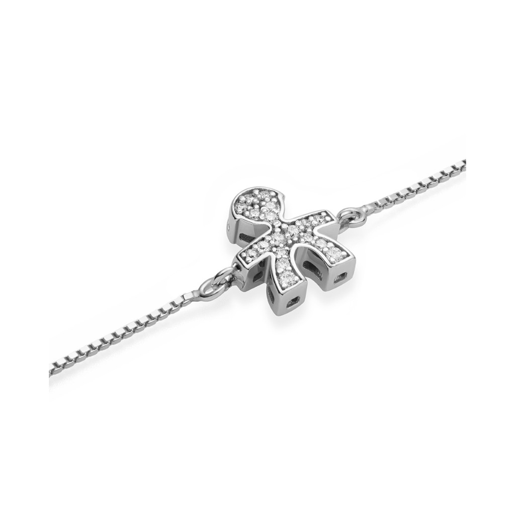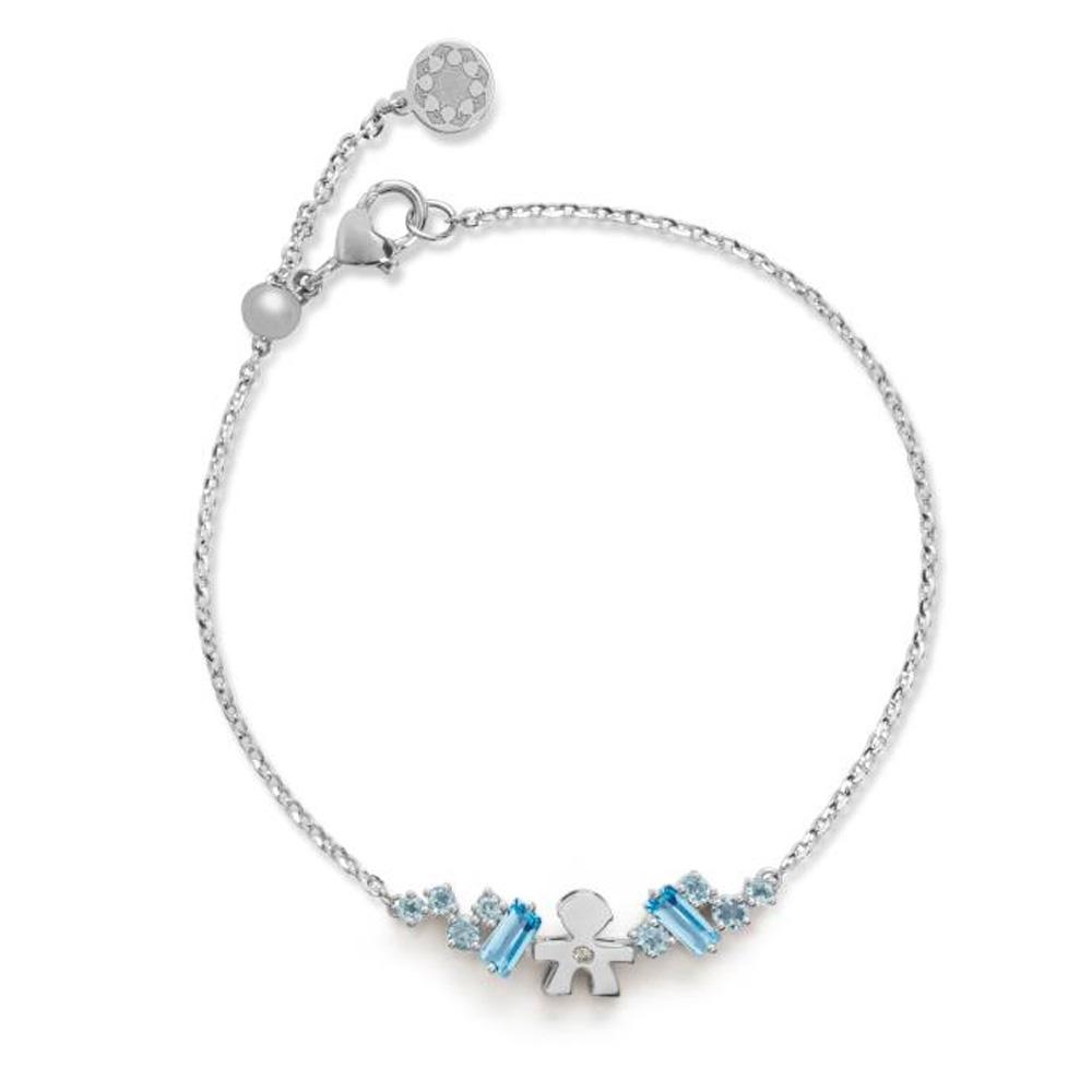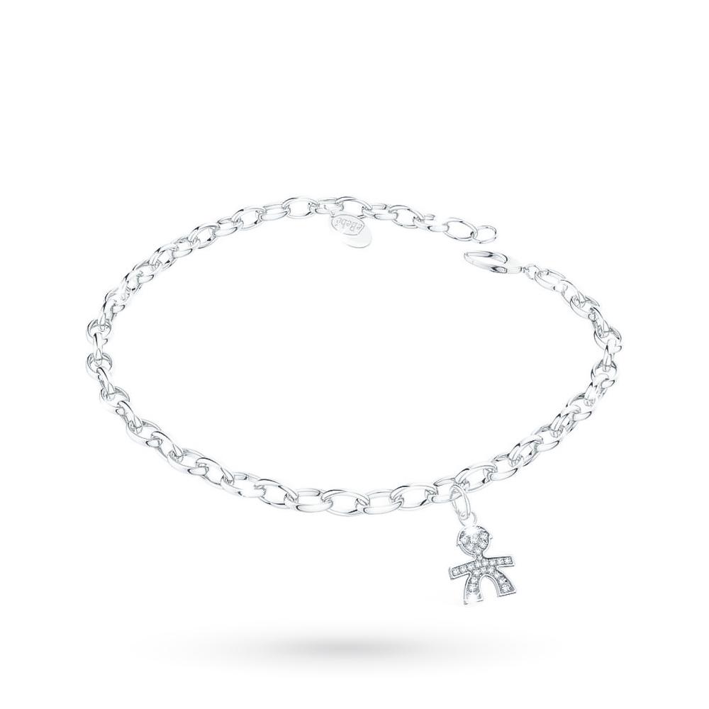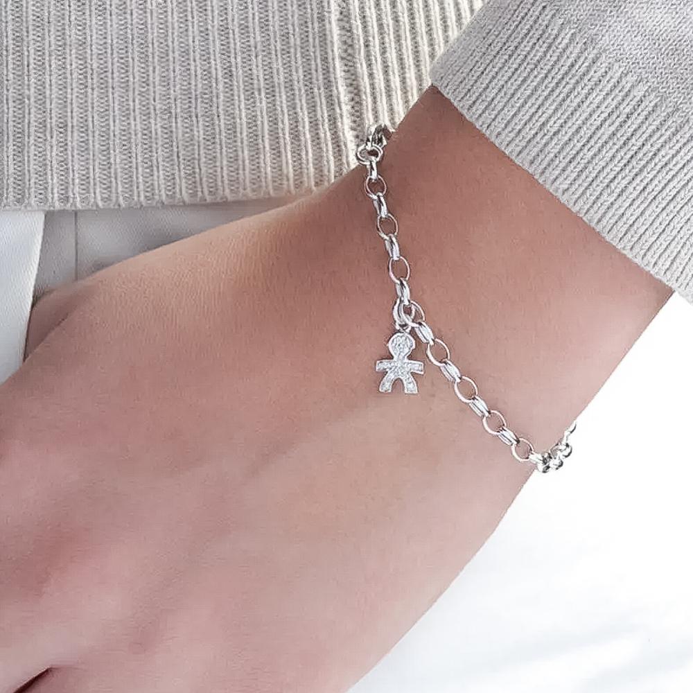 Bracciale leBebe LBB072 bimbo oro bianco diamanti 0,05ct. Il bracciale in oro che stai osservando è una creazione esclusiva firmata leBebe. Questo gioiello è realizzato con una catena rolò d'oro bianco 18kt e un ciondolo con sagoma di bimbo anch'esso d'oro bianco 18kt. Il peso complessivo del bracciale è di 4,5 grammi, ed ha 0,05ct di diamanti con taglio rotondo a brillante posizionati per impreziosire il ciondolo maschietto. La chiusura è una pratica chiusura a moschettone, solida e facile da chiudere. La gioielleria Cicala è rivenditore autorizzato leBebe: acquistando questo gioiello lo riceverai con la scatola e la garanzia ufficiale. La spedizione è coperta da un'assicurazione gratuita offerta da Cicala.