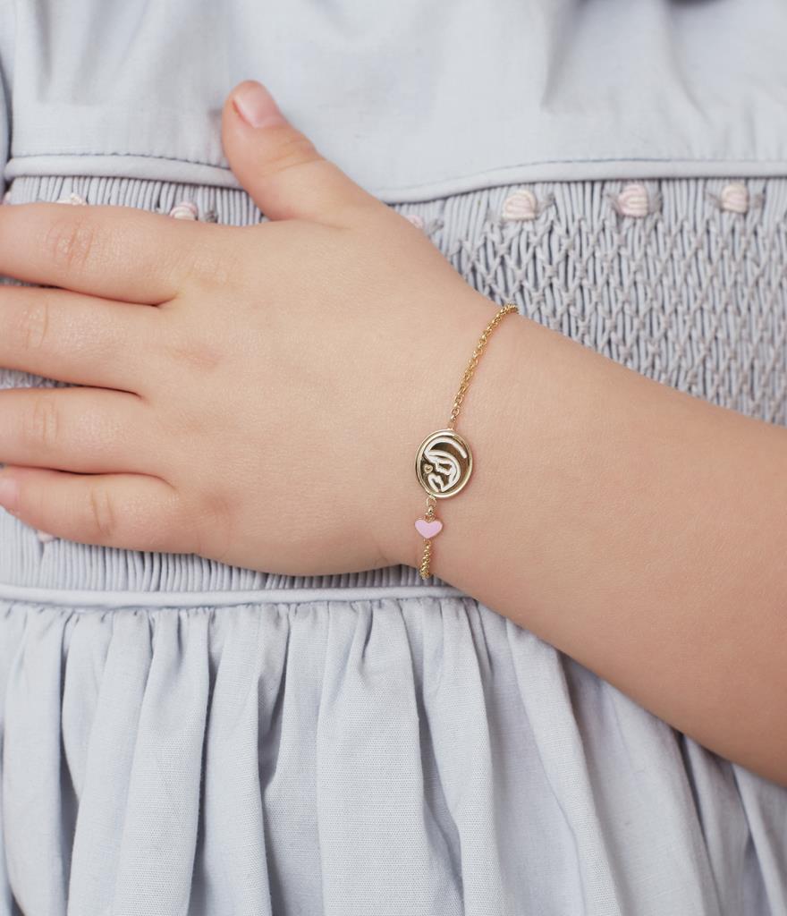 Bracciale leBebe PMG085 Proteggimi Madonnina cuore oro giallo 9kt. Lunghezza bracciale: 13-15cm. Chiusura con pratico anello a molla. Idea regalo perfetta per celebrare un battesimo o una comunione, o per un regalo per bimbo o bimba.
