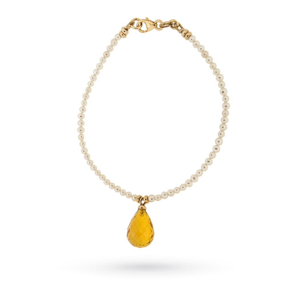 Questa bracciale è composto da un elegante filo di perle e da una belissima goccia di citrino.