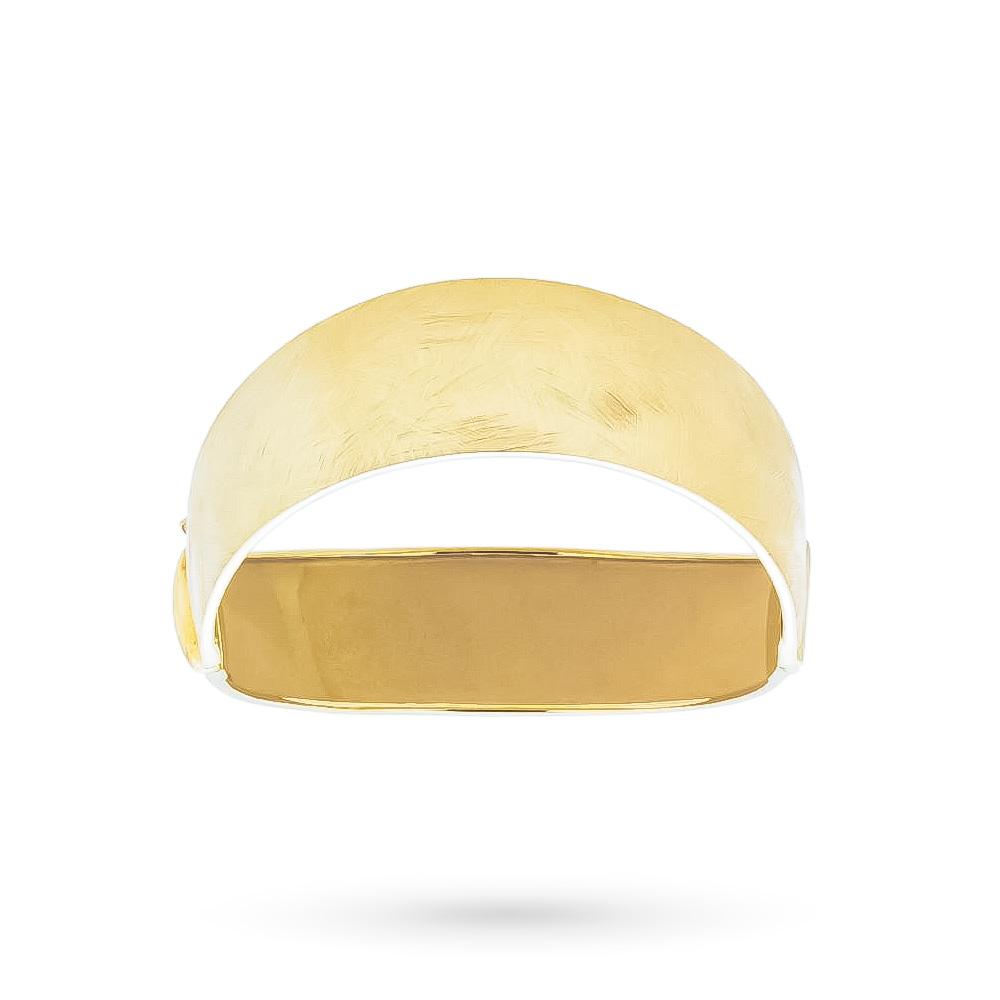 Questo magnifico bracciale rigido è una creazione di grande pregio, realizzata interamente in oro giallo 18kt con una raffinata finitura satinata/setata sulla superficie. Il design esclusivo e la lavorazione artigianale donano a questo gioiello un aspetto sofisticato e senza tempo, perfetto per chi ama gli accessori eleganti e distintivi.