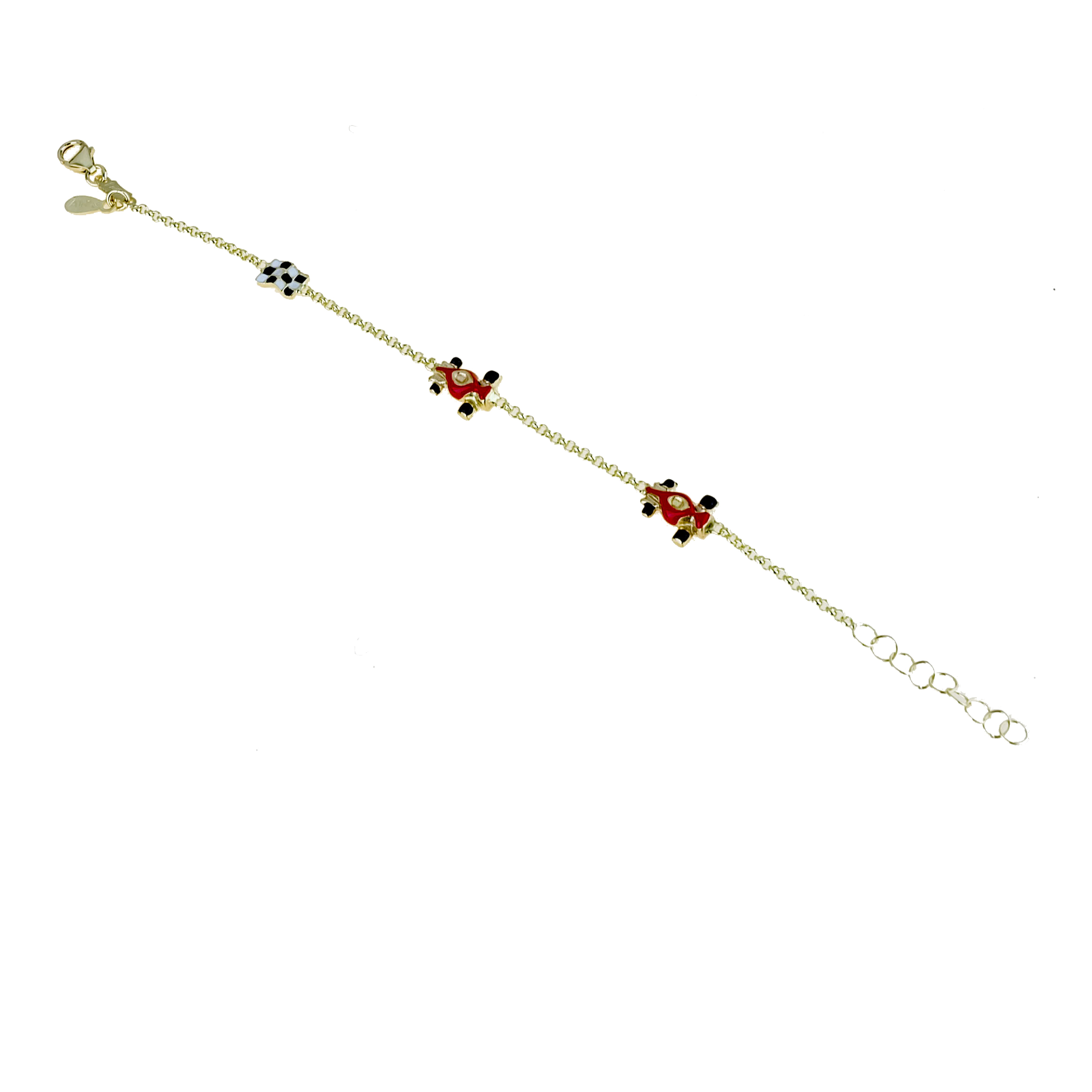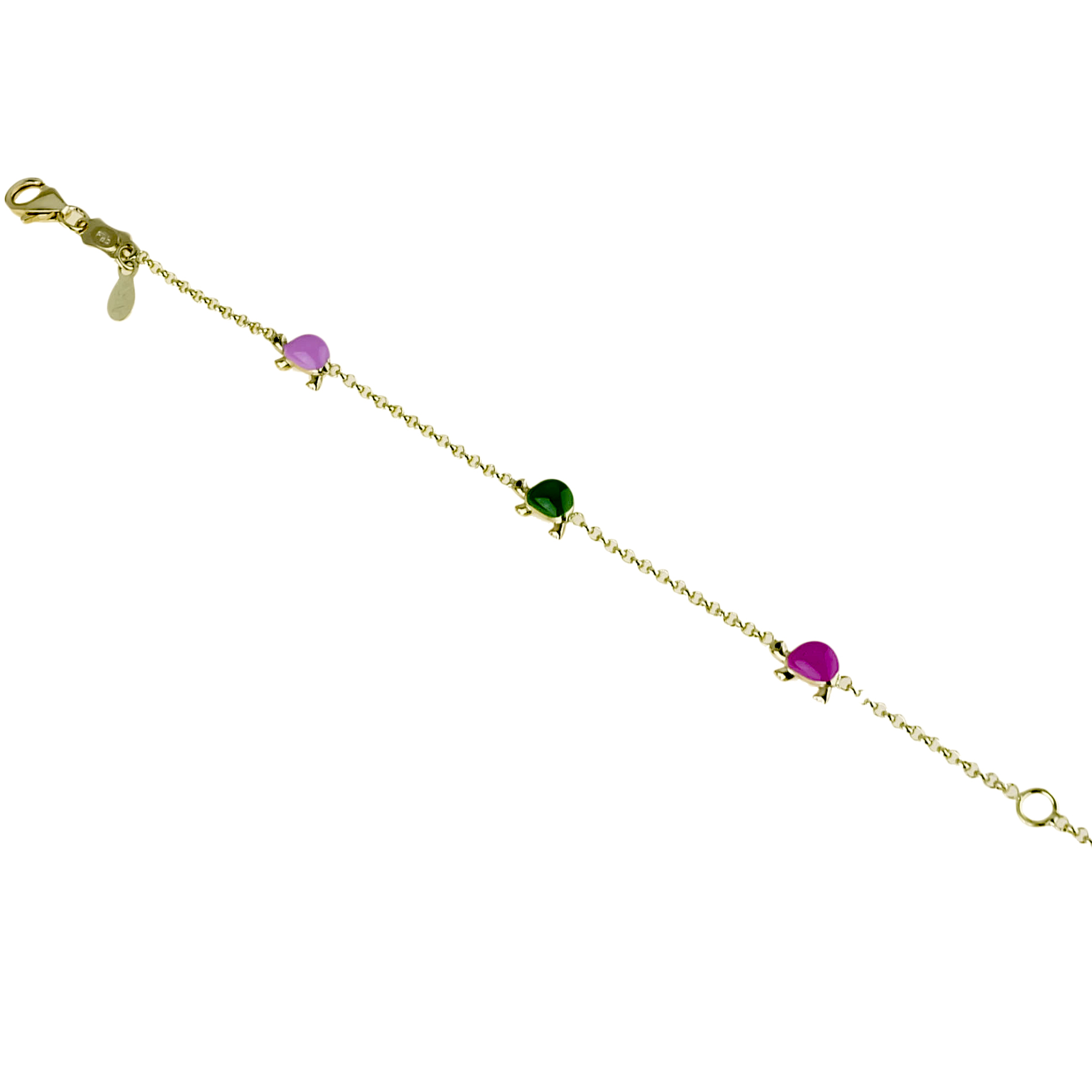 E' dotato di una pratica chiusura a moschettone in oro giallo grammi 10.10.