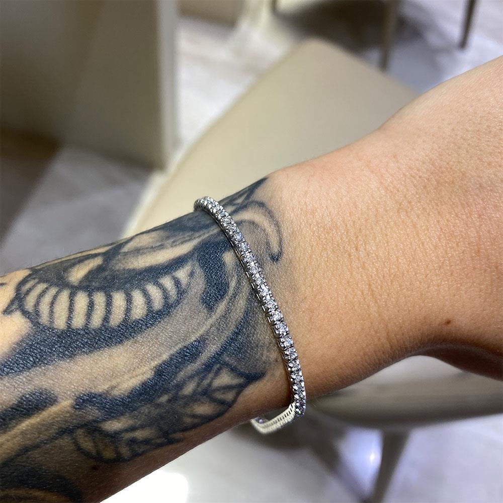 Questo bracciale tennis è realizzato in prezioso oro bianco 18kt.