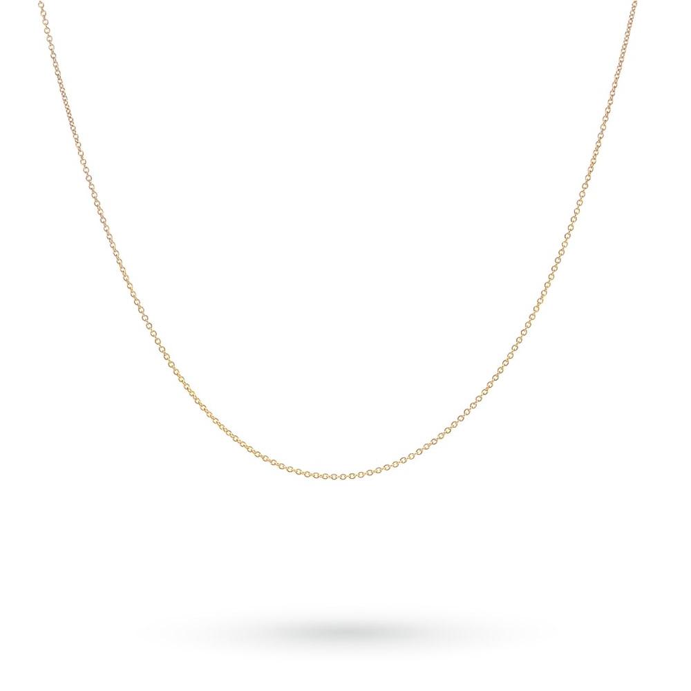 Catenina Sottile Rolò in Oro Giallo 18kt, 40cm. Elegante e delicata, questa catenina sottile rolò in oro giallo 18 carati è perfetta per un look quotidiano o per impreziosire un ciondolo speciale. La maglia rolò, con la sua forma arrotondata e lucente, dona un tocco di raffinatezza e luminosità.