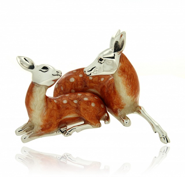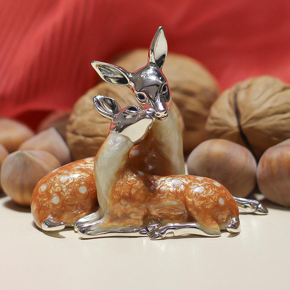 Cerbiatti coppia soprammobile argento 925 smalto. Il soprammobile "Coppia di cerbiatti" è una creazione del Brand Saturno, eccellenza italiana del Made in Italy. Saturno realizza piccoli capolavori artigianali in argento tutti diversi tra loro grazie alle sfumature delle smaltature applicate a mano: non esisteranno mai due Soprammobile uguali tra loro. Questi Soprammobile in argento sono l'ideale per i collezionisti di oggetti esclusivi e per chi ama arredare la propria casa o il proprio ufficio con elementi d'arredo ricercati e preziosi.