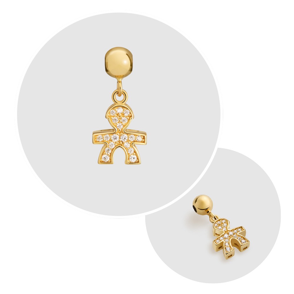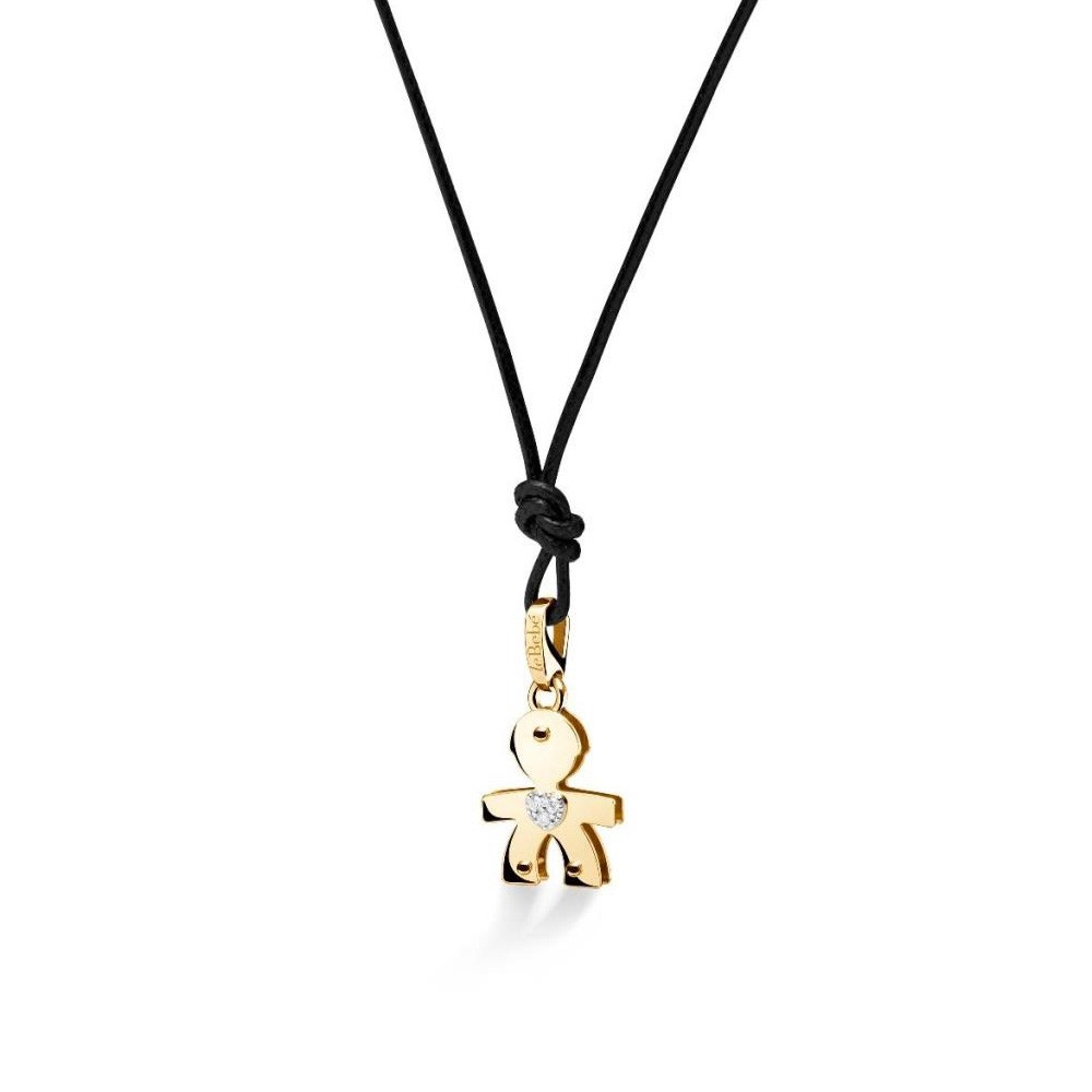 Charm con sagoma di bimbo in oro giallo 18kt, con pavè di diamanti taglio brillante da 0,08ct. Altezza 1,5 cm. Può essere utilizzato esclusivamente con la collana LBB969. Referenza leBebe LBB980. Rifenditore ufficiale, consegna con scatola e garanzia.
