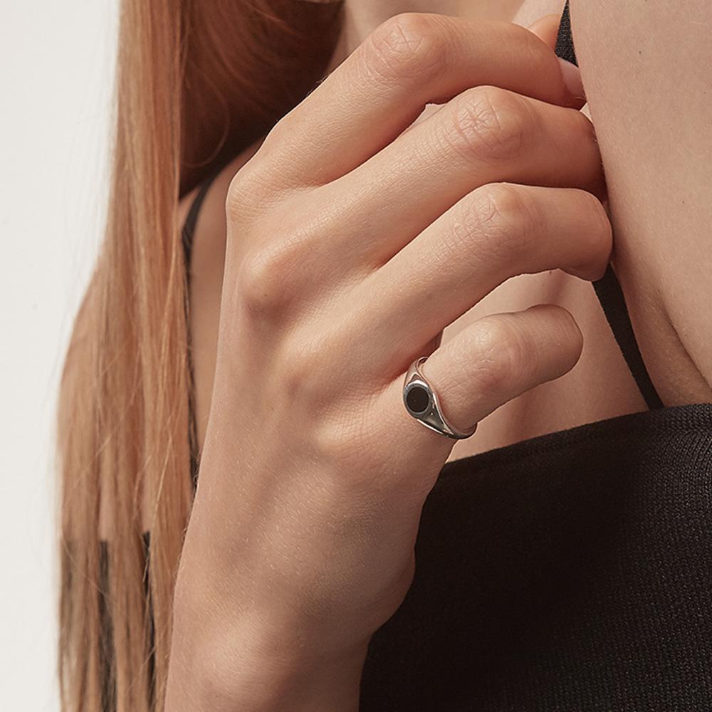 Chevalier tondo smalto nero mignolo argento lucido 925.