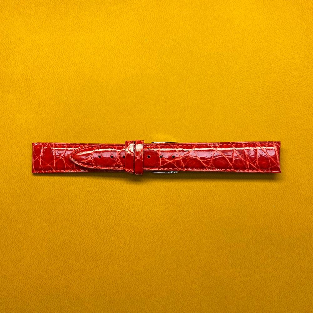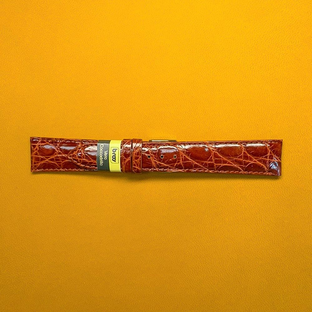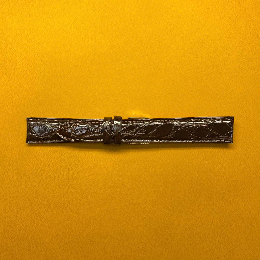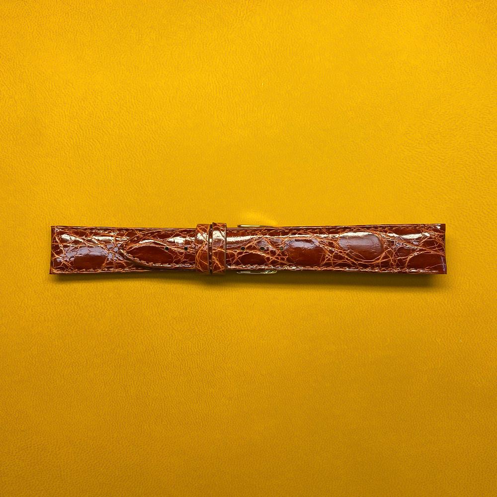 Cinturino coccodrillo Brasile verde lucido semimbottito 18-16mm. Cinturino semimbottito e semiribordato in pelle di vero coccodrillo Brasile. Fodera in morbida pelle e cuciture colore tono su tono. Adatto a orologi classici. Lunghezza spezzone ore 6: 75 mm - Lunghezza spezzone ore 12: 120mm. Ansa: 18mm - Fibbia: 16mm. Fibbia in acciaio o acciaio dorato fornita in omaggio (si prega di specificare la propria preferenza nel campo note).