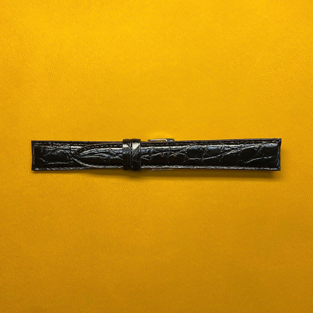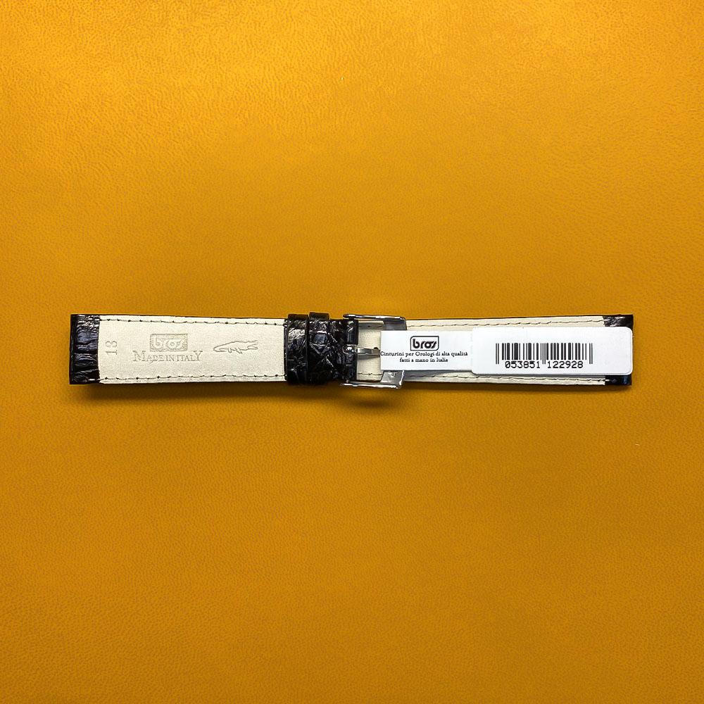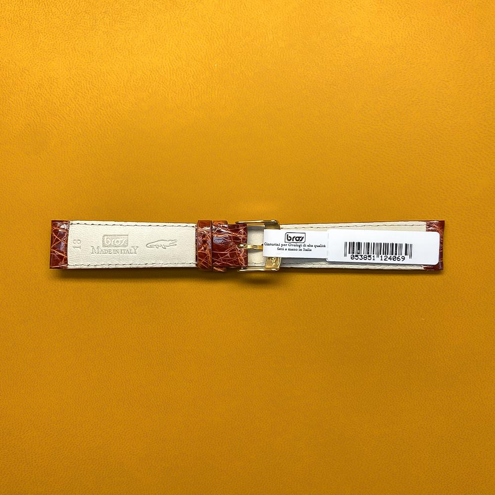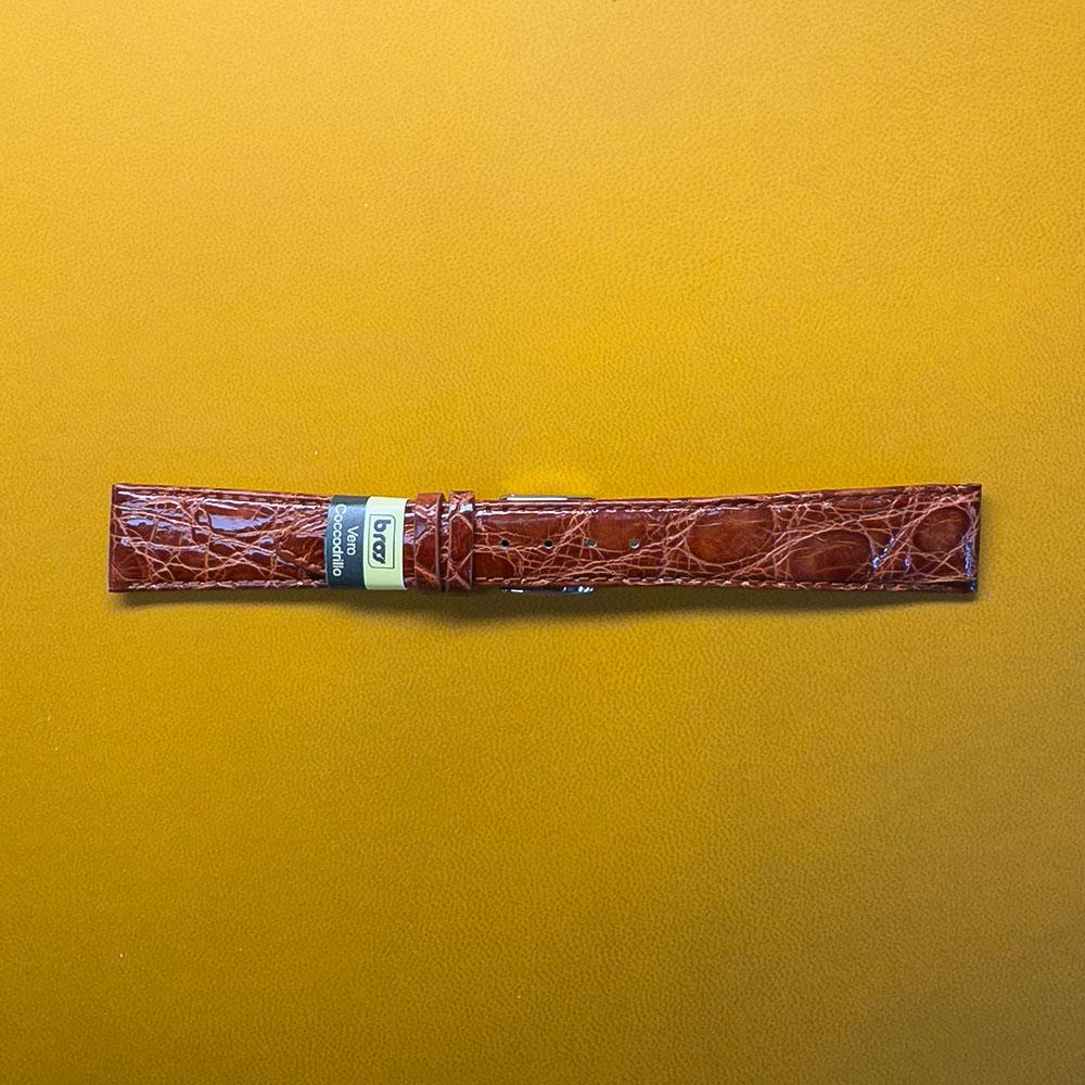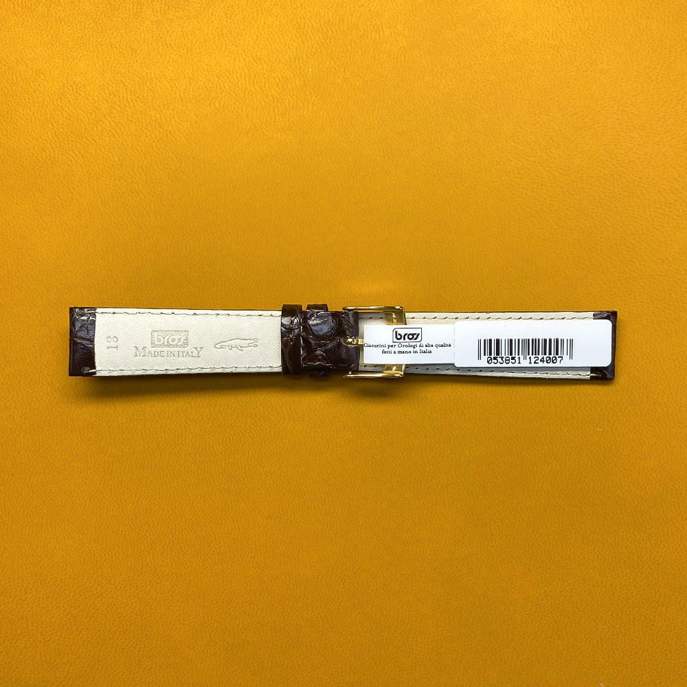 Cinturino coccodrillo Brasile verde lucido semimbottito 18-16mm. Cinturino semimbottito e semiribordato in pelle di vero coccodrillo Brasile. Fodera in morbida pelle e cuciture colore tono su tono. Adatto a orologi classici. Lunghezza spezzone ore 6: 75 mm - Lunghezza spezzone ore 12: 120mm. Ansa: 18mm - Fibbia: 16mm. Fibbia in acciaio o acciaio dorato fornita in omaggio (si prega di specificare la propria preferenza nel campo note).