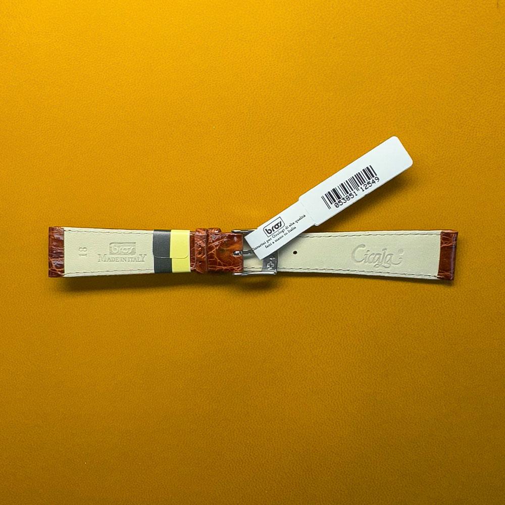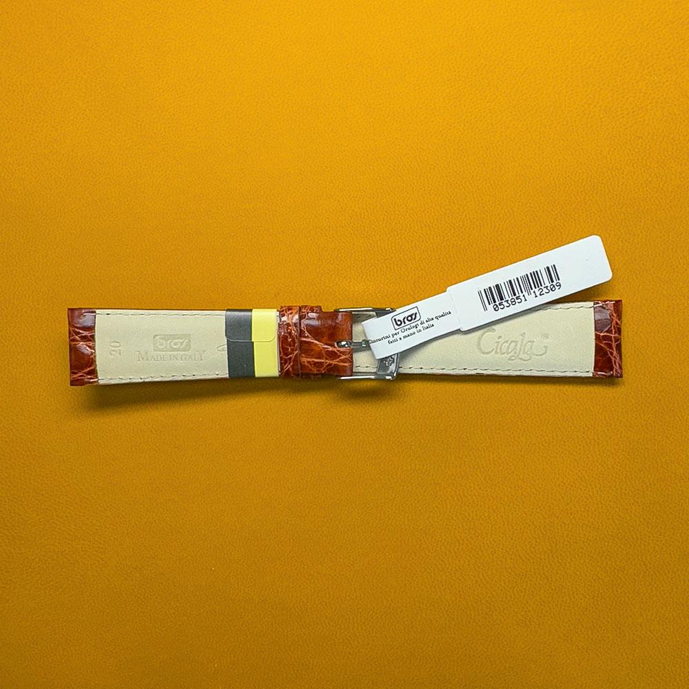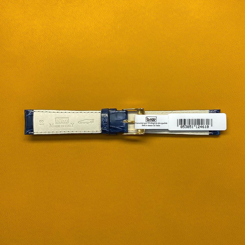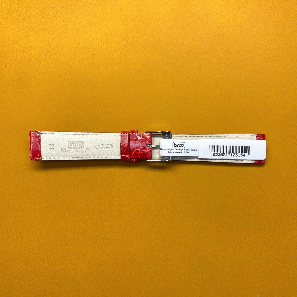 Cinturino coccodrillo Brasile verde lucido semimbottito 18-16mm. Cinturino semimbottito e semiribordato in pelle di vero coccodrillo Brasile. Fodera in morbida pelle e cuciture colore tono su tono. Adatto a orologi classici. Lunghezza spezzone ore 6: 75 mm - Lunghezza spezzone ore 12: 120mm. Ansa: 18mm - Fibbia: 16mm. Fibbia in acciaio o acciaio dorato fornita in omaggio (si prega di specificare la propria preferenza nel campo note).