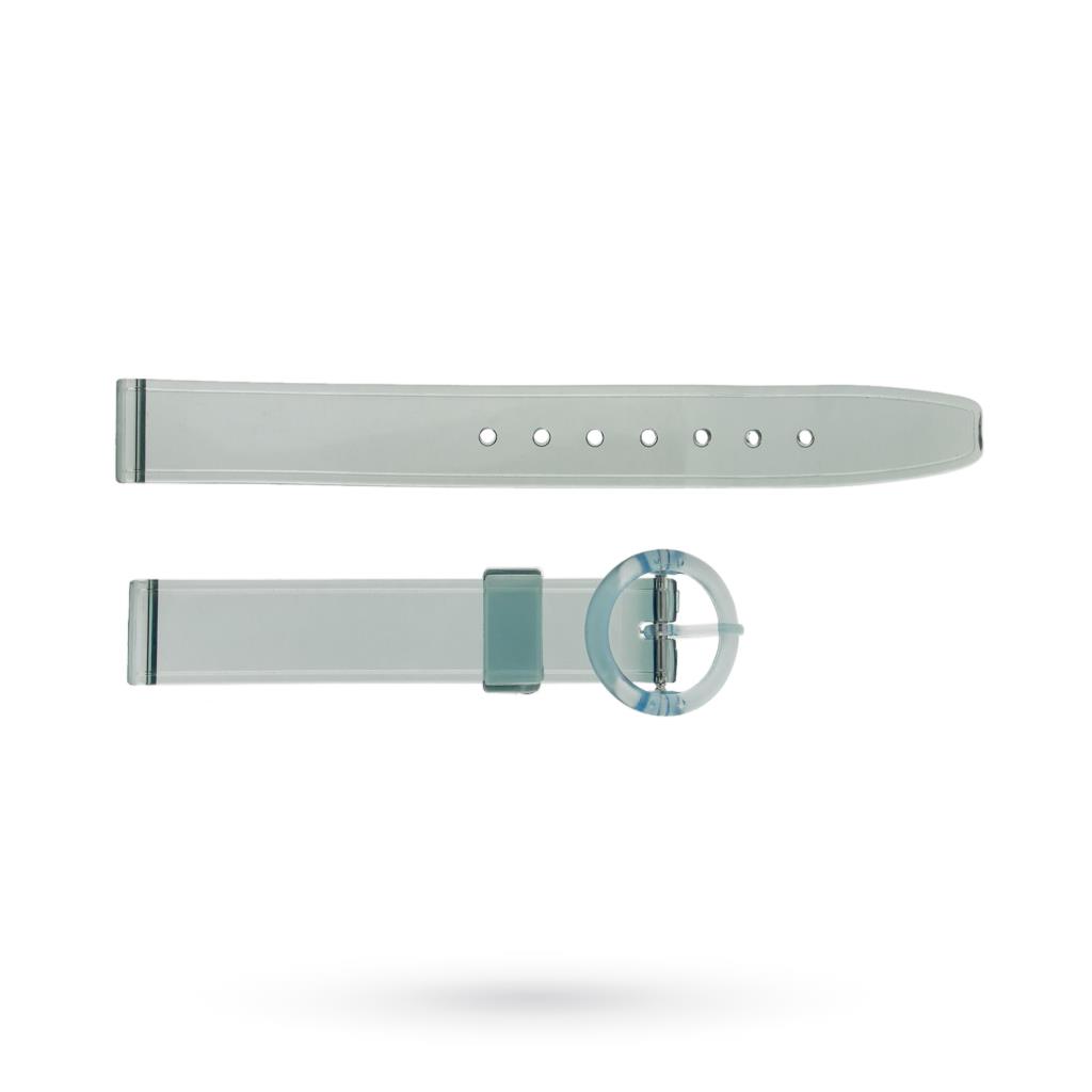 Cinturino economico in gomma trasparente azzurra con fibbia in plastica azzurra.