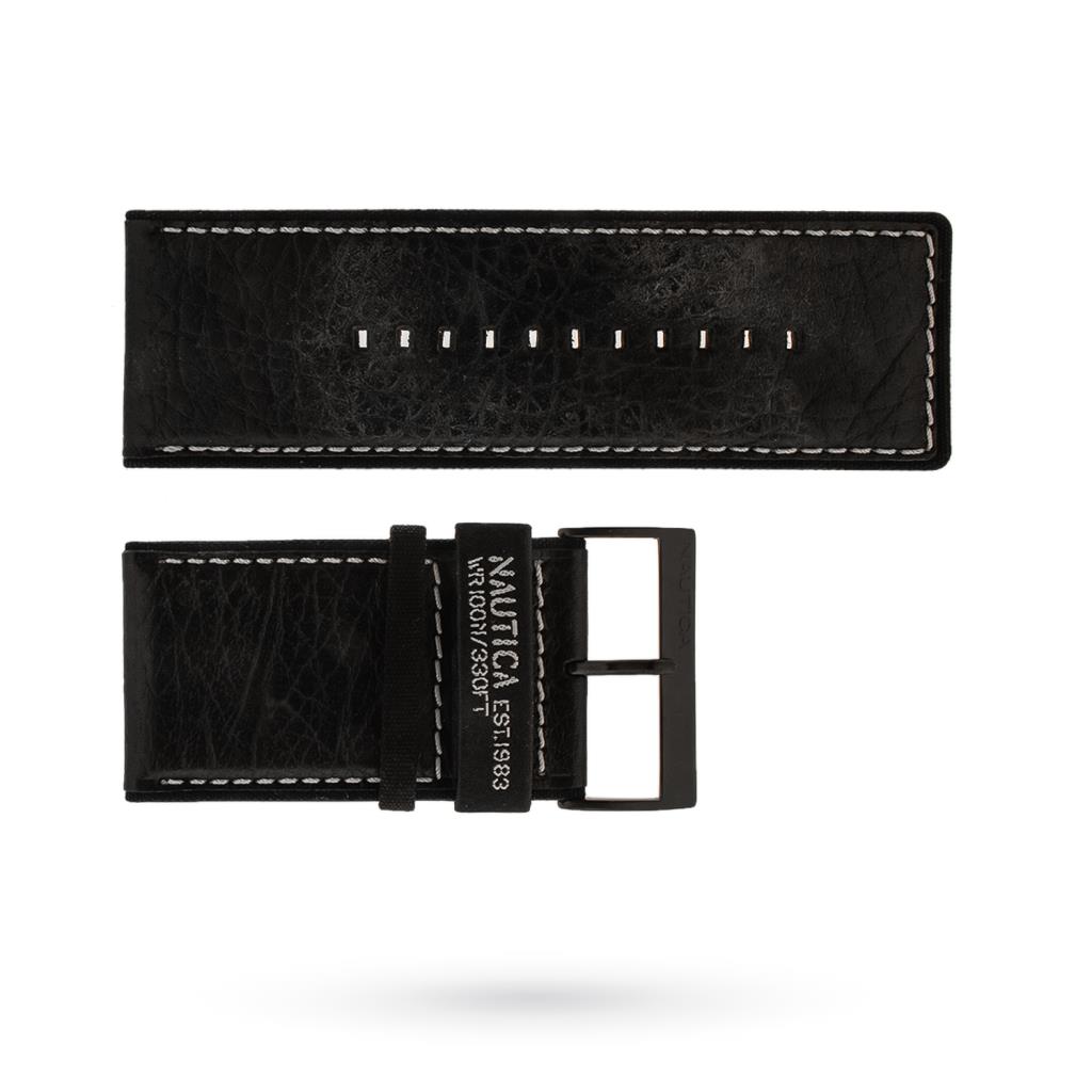 Cinturino originale per orologi Nautica in pelle di colorazione nera con cuciture bianche.