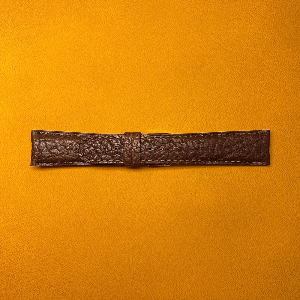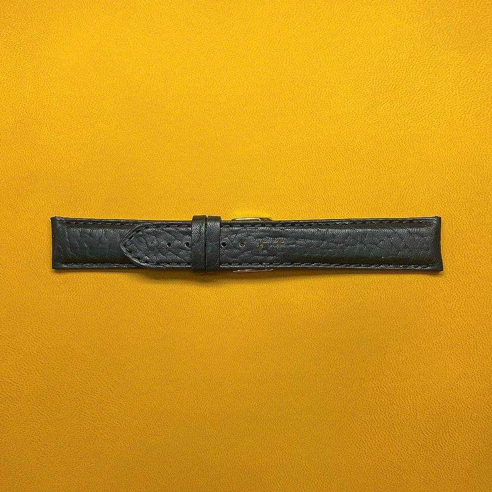 Cinturino pelle toro nero 20-18mm. Cinturino molto imbottito in cuoio di toro. Ideale sia per orologi classici che sportivi. Impunture eseguite a mano con colore della tinta del pellame. Lunghezza spezzone corto ore 12: 120 mm - Lunghezza spezzone lungo ore 6: 75 mm. Larghezza ansa: 20 mm - Larghezza alla fibbia: 18mm. Fibbia in acciaio o acciaio dorato fornita in omaggio (si prega di specificare la propria preferenza nel campo note durante la fase finale di acquisto).