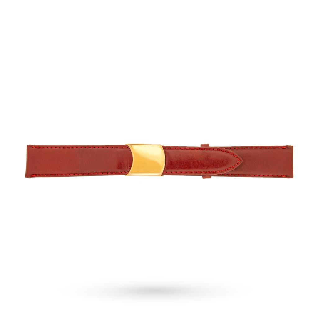 Cinturino per orologi in vernice blu con fibbia in acciaio dorato.