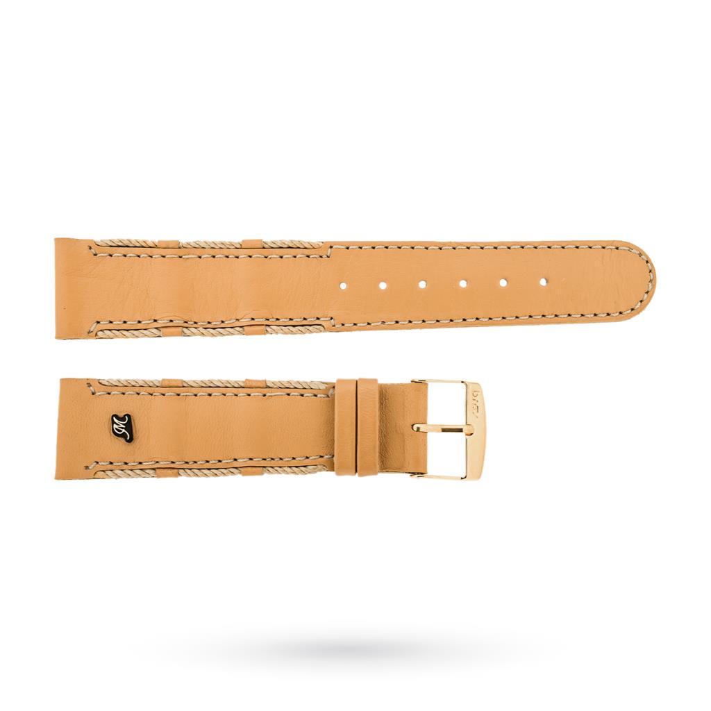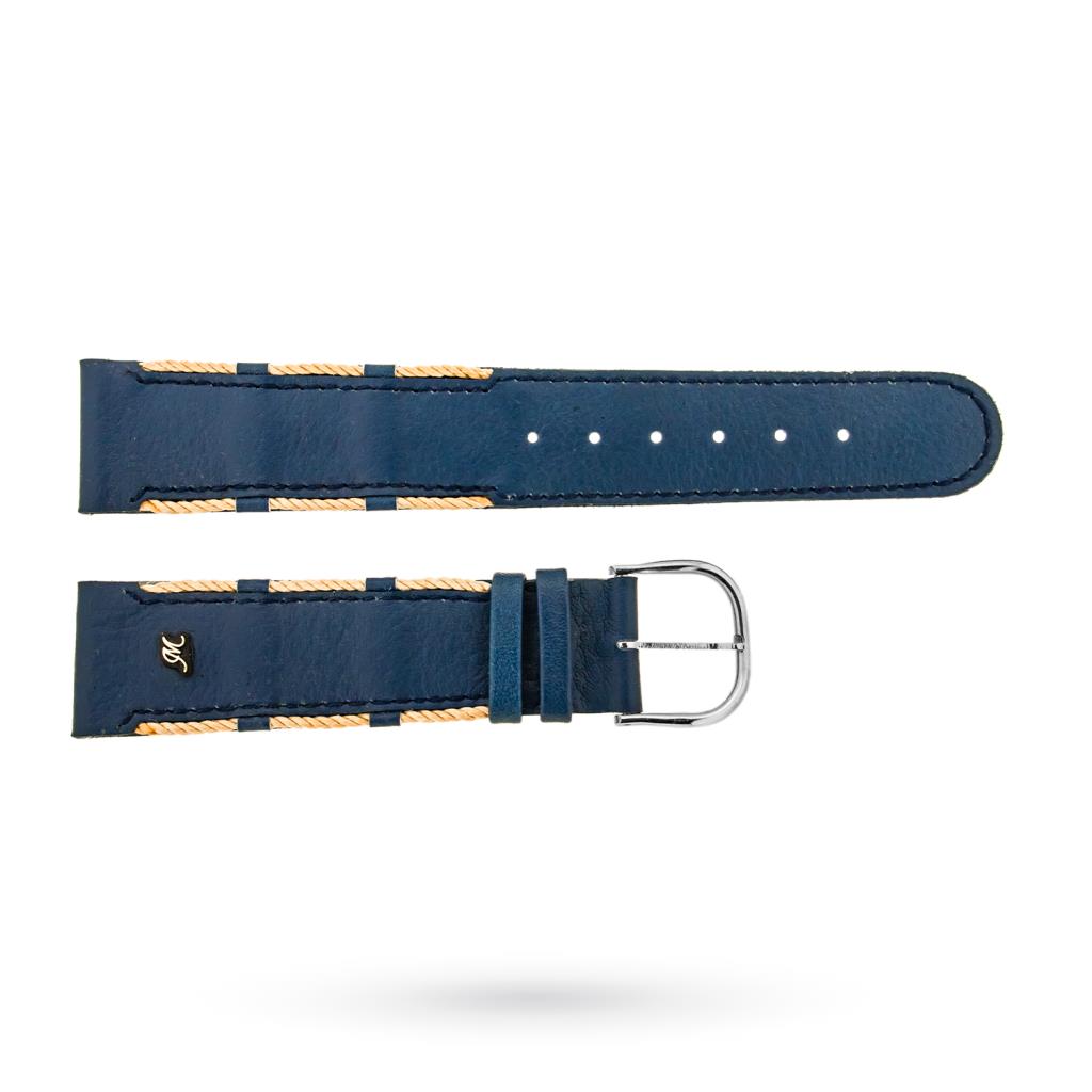 Cinturino per orologi realizzato in pelle blu con corda sul bordo e fibbia acciaio.