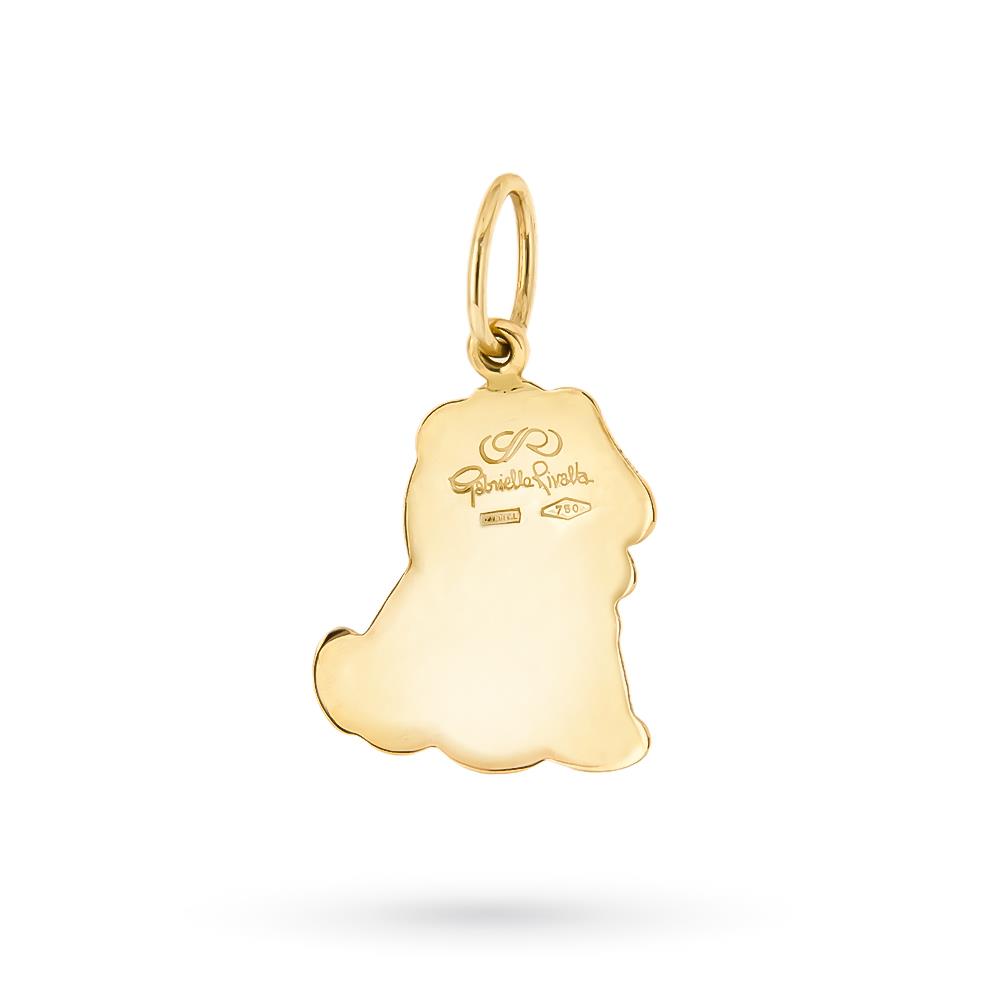E' realizzato su una lastrina d'oro smaltata a mano con contromaglia e tag d'oro giallo 18kt.