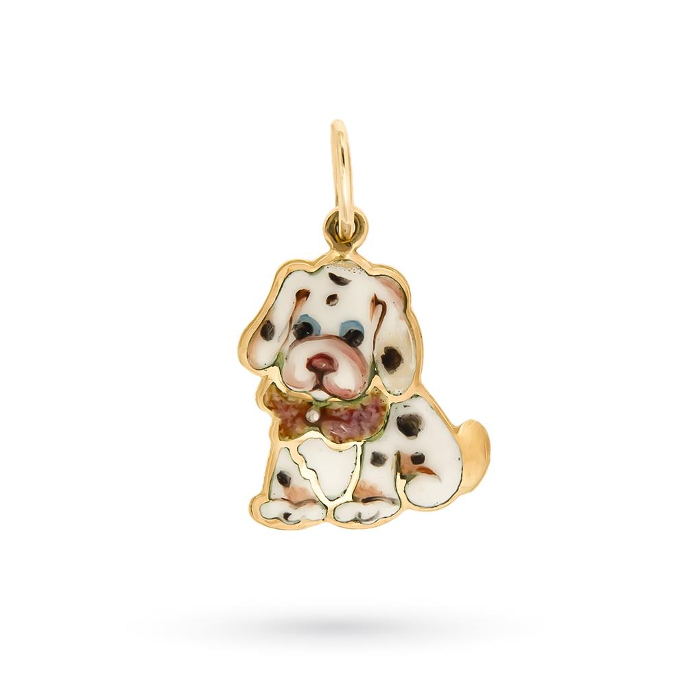 E' realizzato su una lastrina di rame smaltata a mano con contromaglia e tag d'oro giallo 18kt.