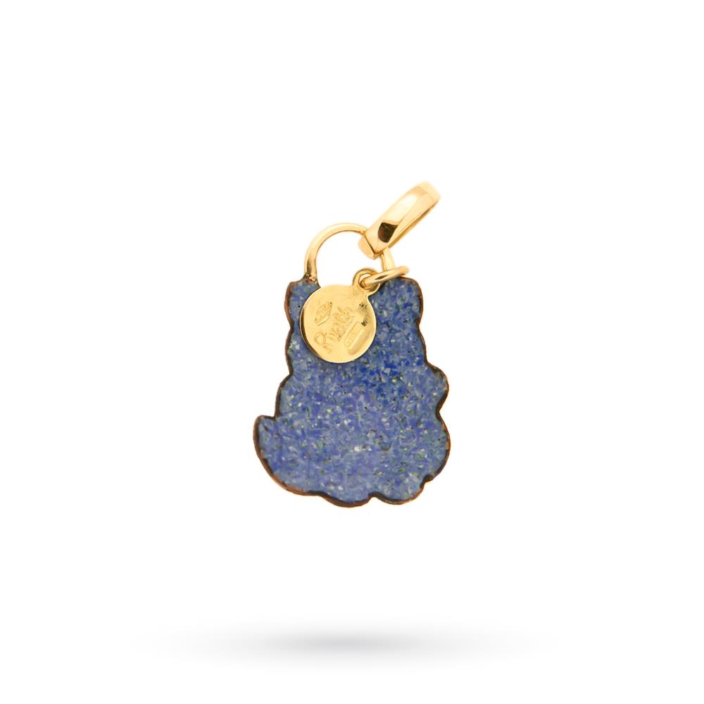 E' realizzato su una lastrina di rame smaltata a mano con contromaglia d'oro giallo 18kt.