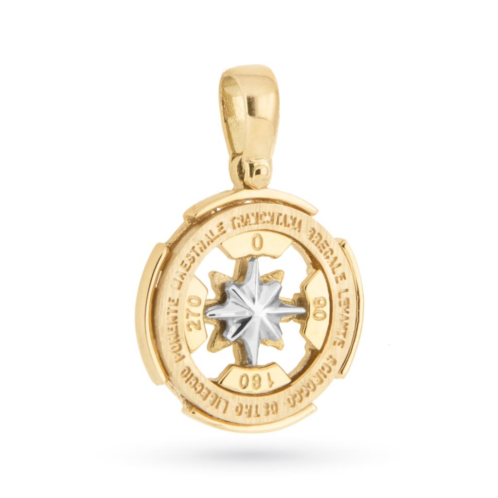 Questo elegante ciondolo rappresenta la Rosa dei Venti, un simbolo di orientamento e guida, perfetto per chi ama gioielli dal significato profondo. Realizzato in prezioso oro bianco e giallo 18kt (750/000), il ciondolo è anallergico e nickel free, garantendo sicurezza e comfort per chi lo indossa.