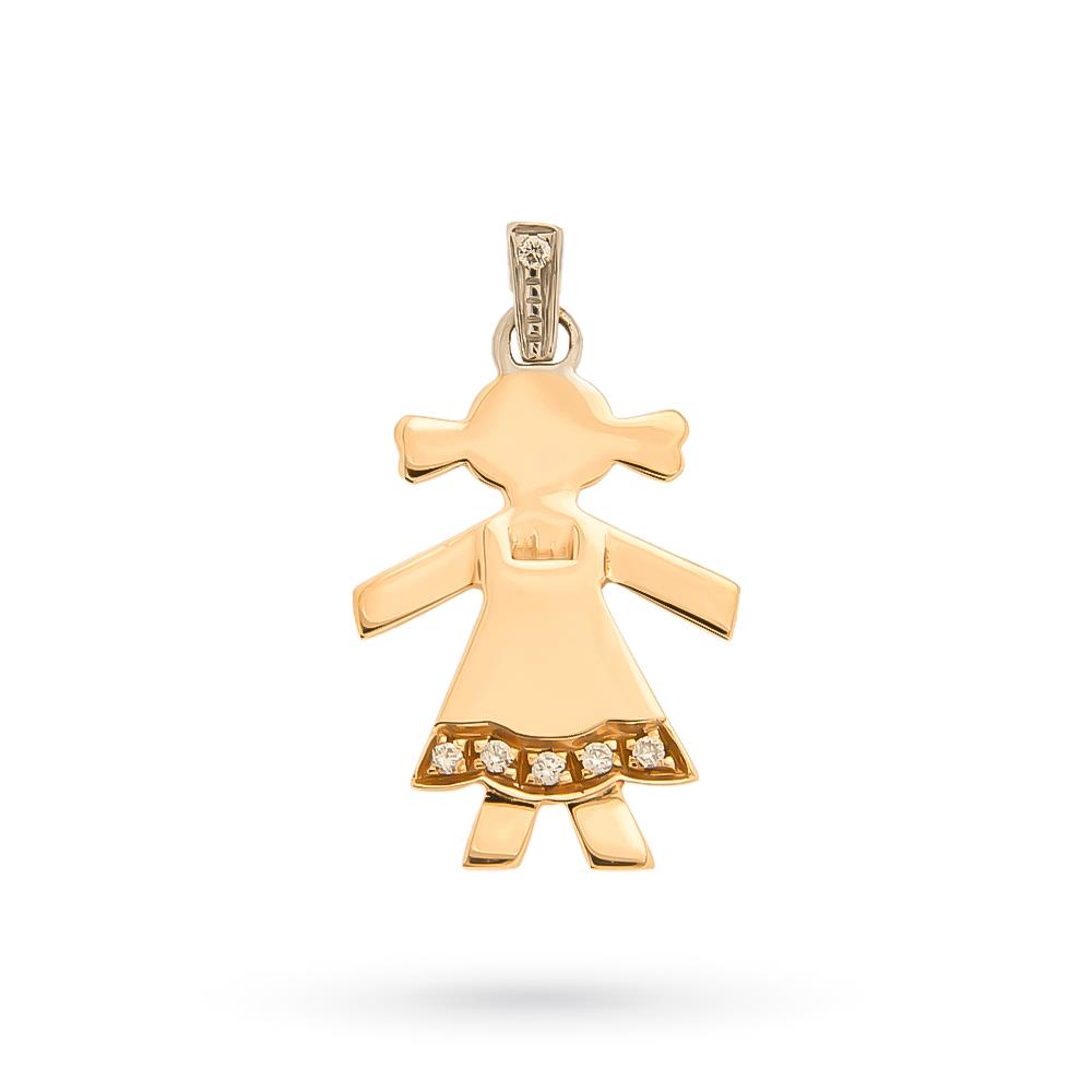 Il ciondolo bimba con gonna che stai osservando è realizzato in oro rosa 18kt lucido.