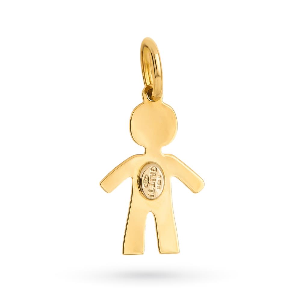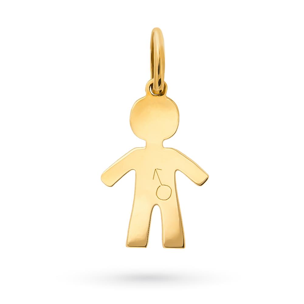 Il ciondolo bimbo con simbolo uomo che stai osservando è realizzato in oro giallo 18kt.