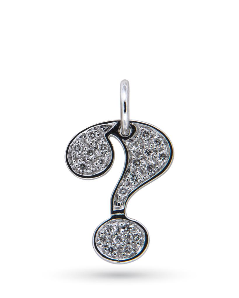 Ciondolo con punto interrogativo in oro bianco e diamanti