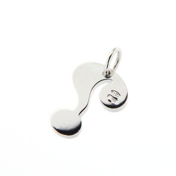 Un magnifico ciondolo realizzato interamente in oro bianco 18kt dalla simpatica forma a punto interrogativo realizzato interamente in oro bianco 18kt ed impreziosito da stupendi diamanti bianchi incastonati sulla superficie.