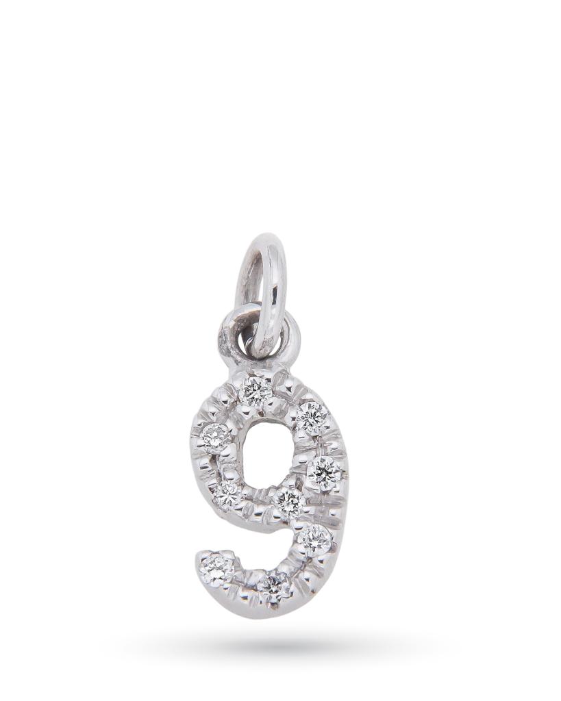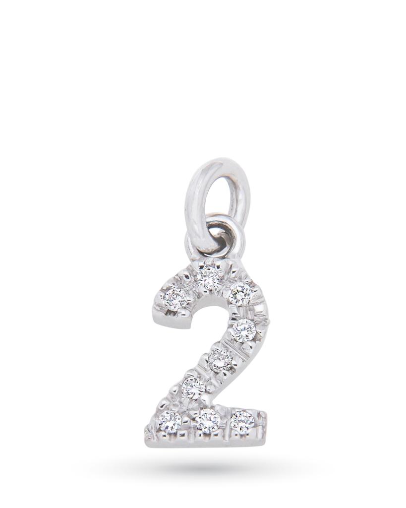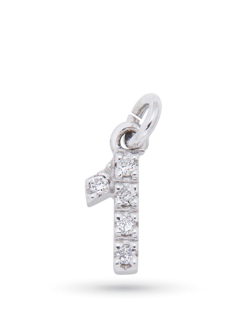 Ciondolo in oro bianco con numero in diamanti 0,04ct G VS