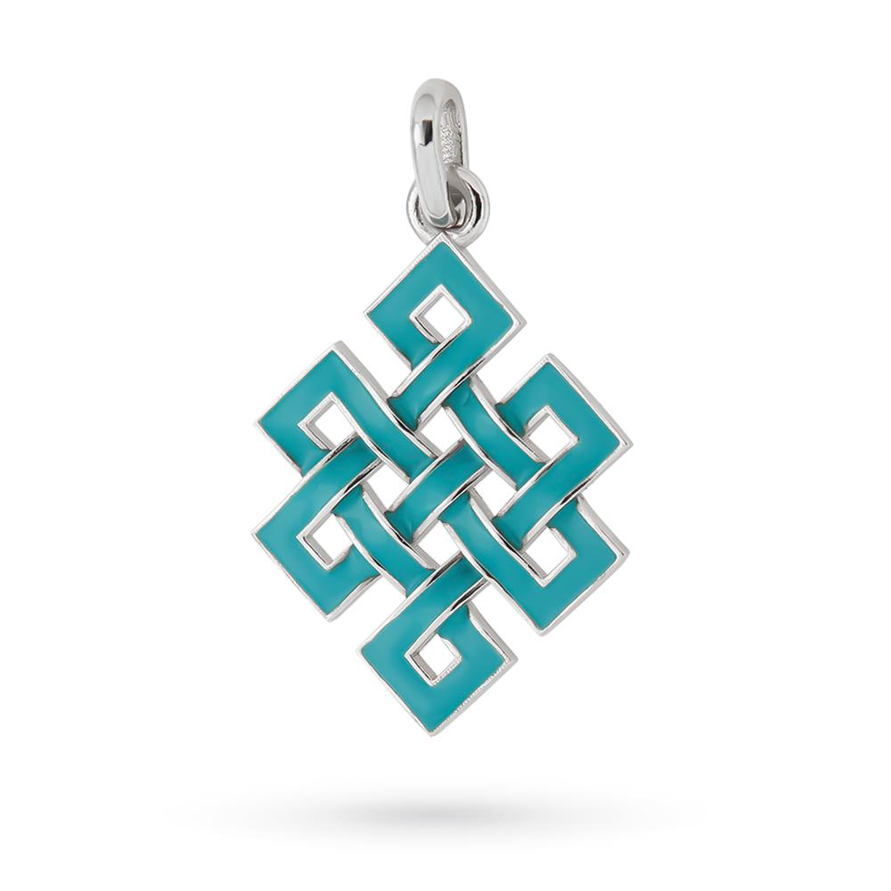 Ciondolo infinito tibetano oro bianco smalto turchese