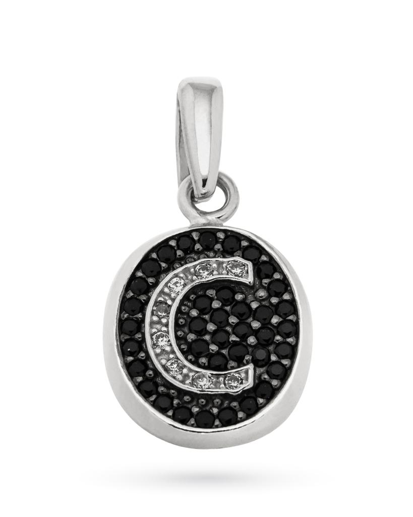 Ciondolo pendente con iniziale lettera alfabeto C in argento 925 anallergico e zirconi bianchi e neri.