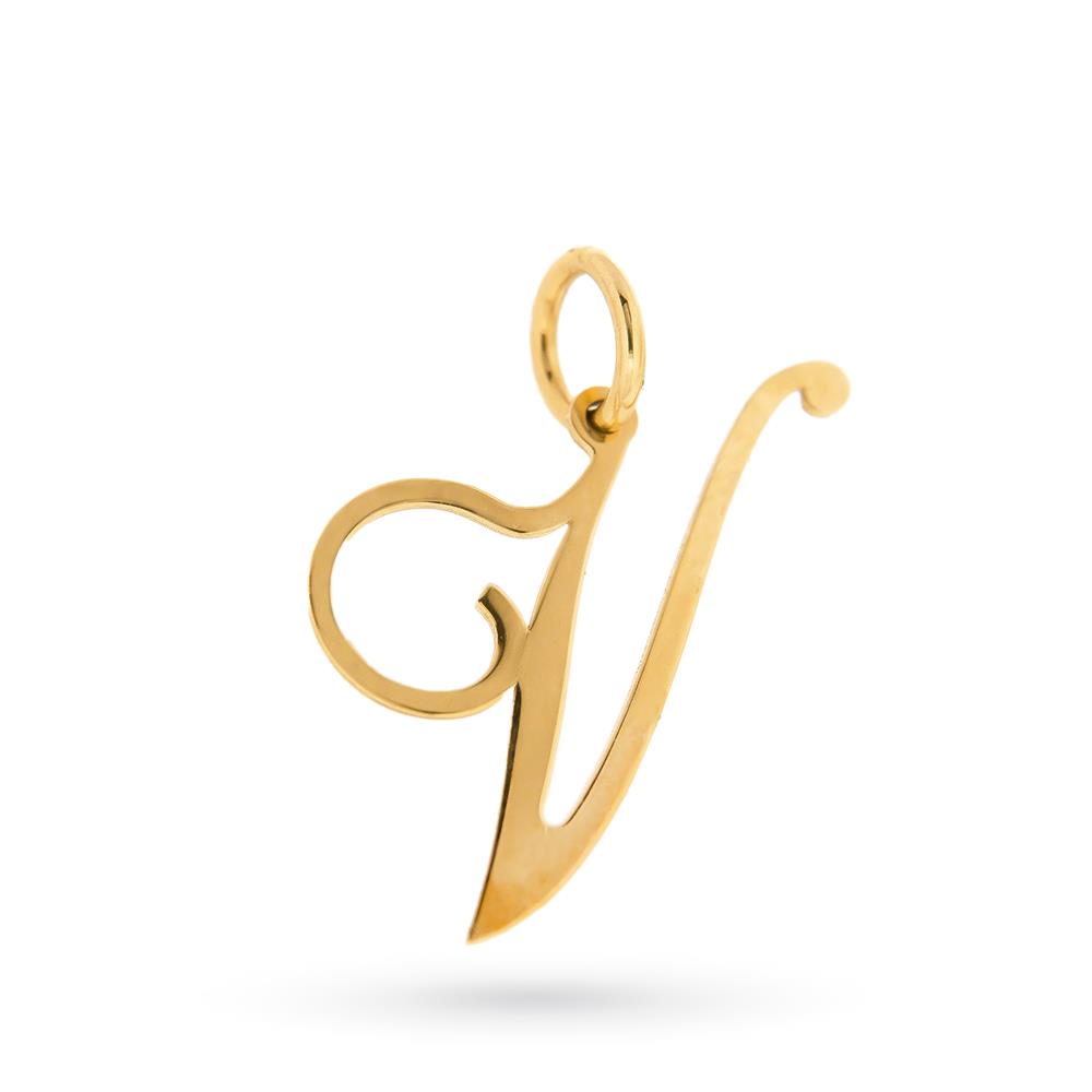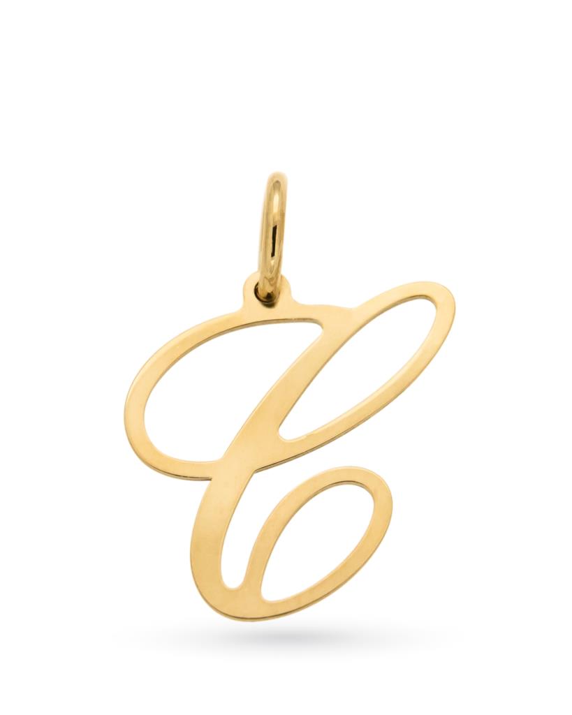 Ciondolo in oro giallo 18kt con lettera iniziale C in corsivo.